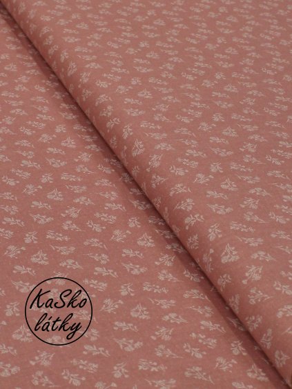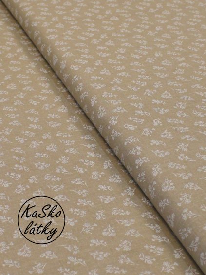 Bavlněná látka béžové kytičky s puntíky na bílé