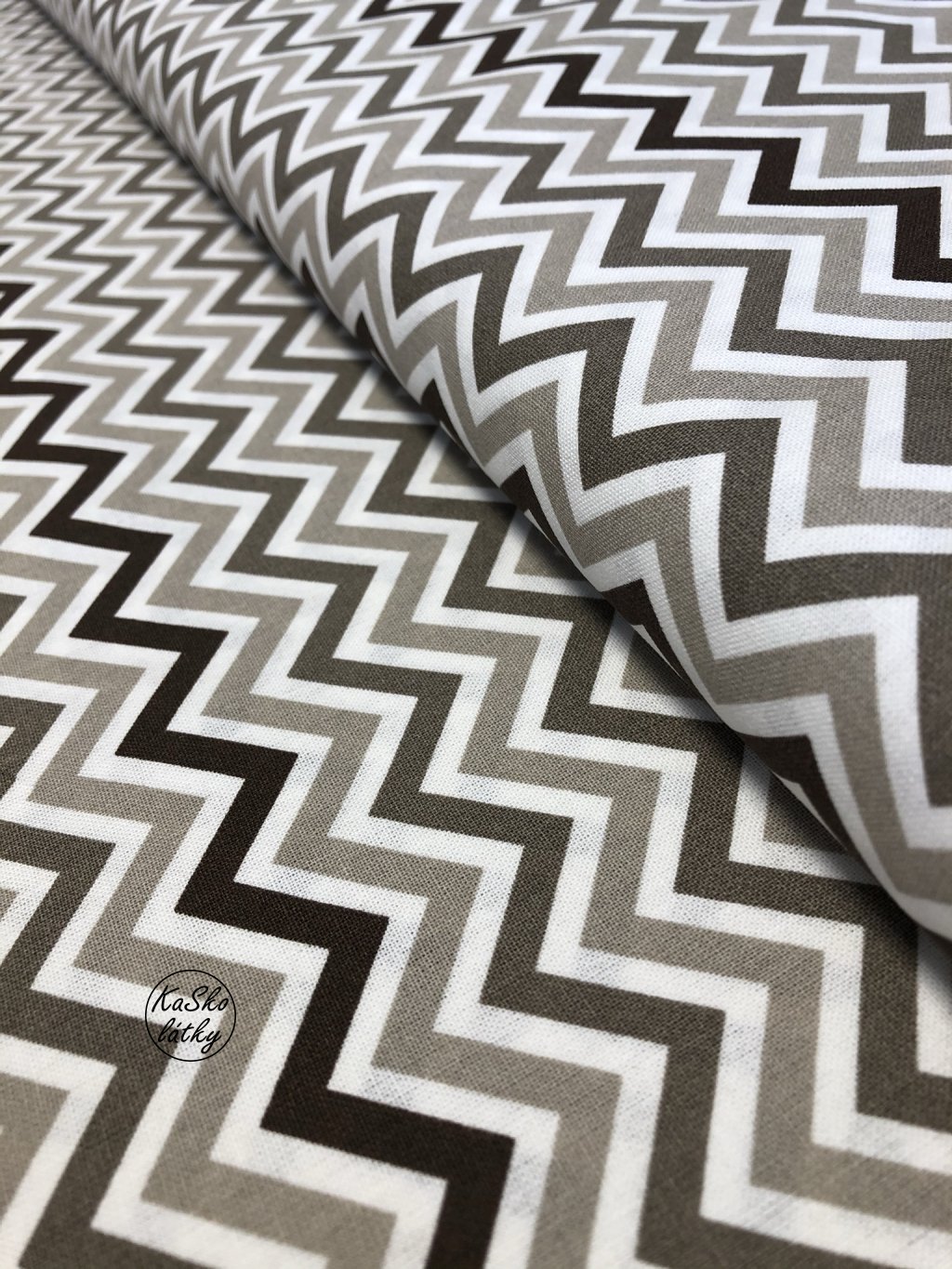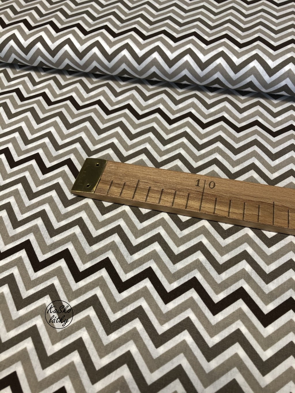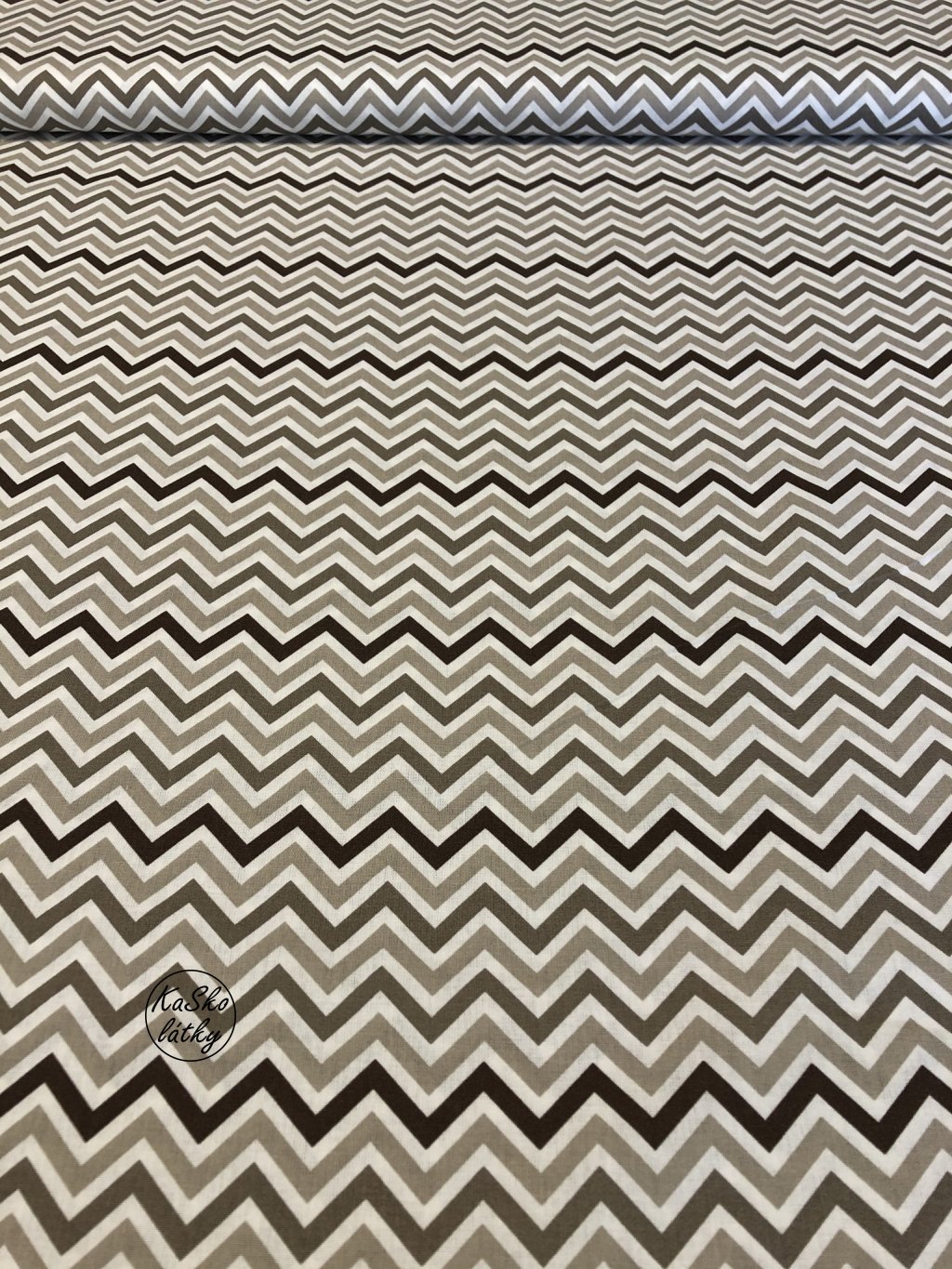Bavlněná látka béžový a hnědý cikcak