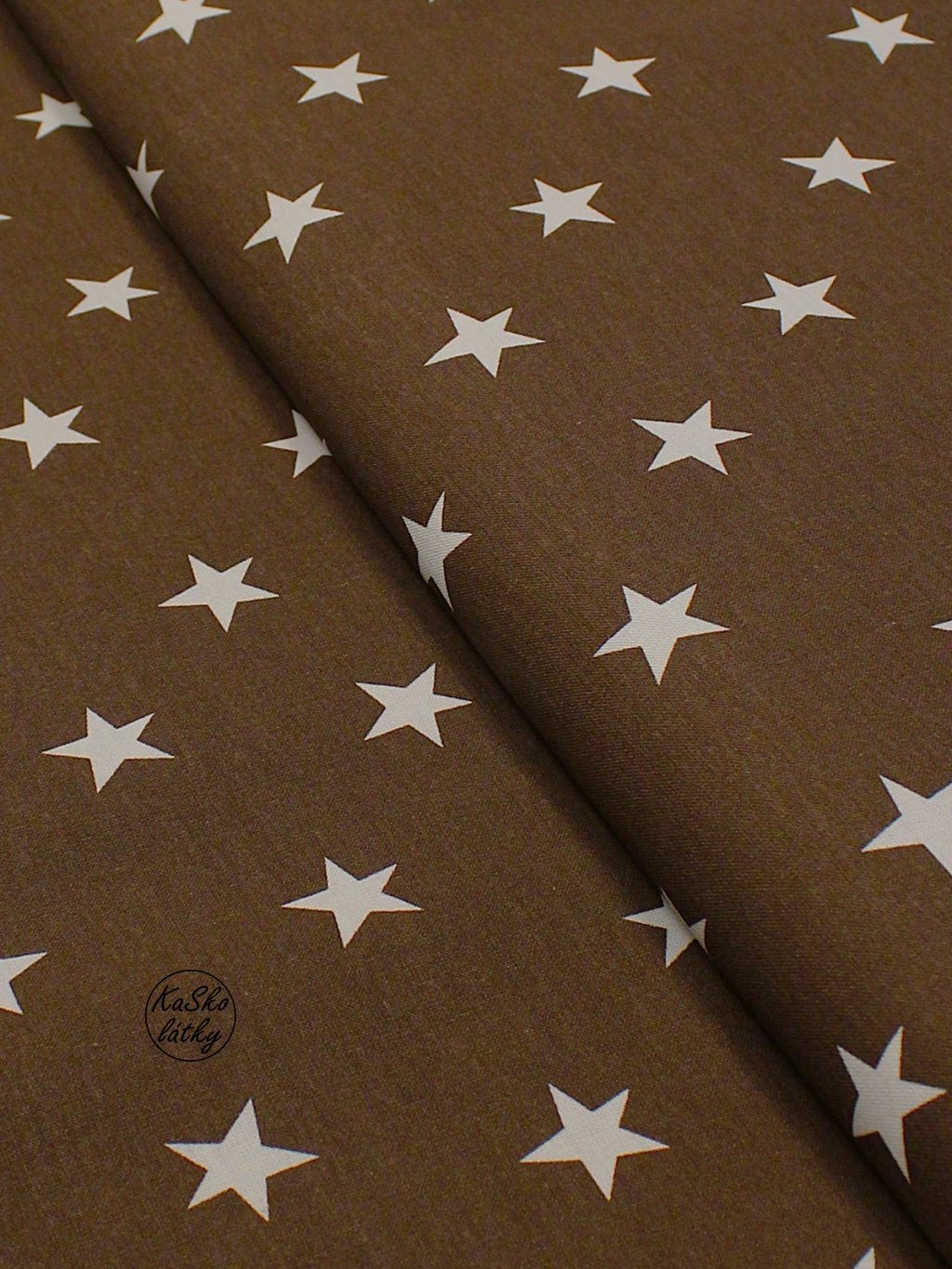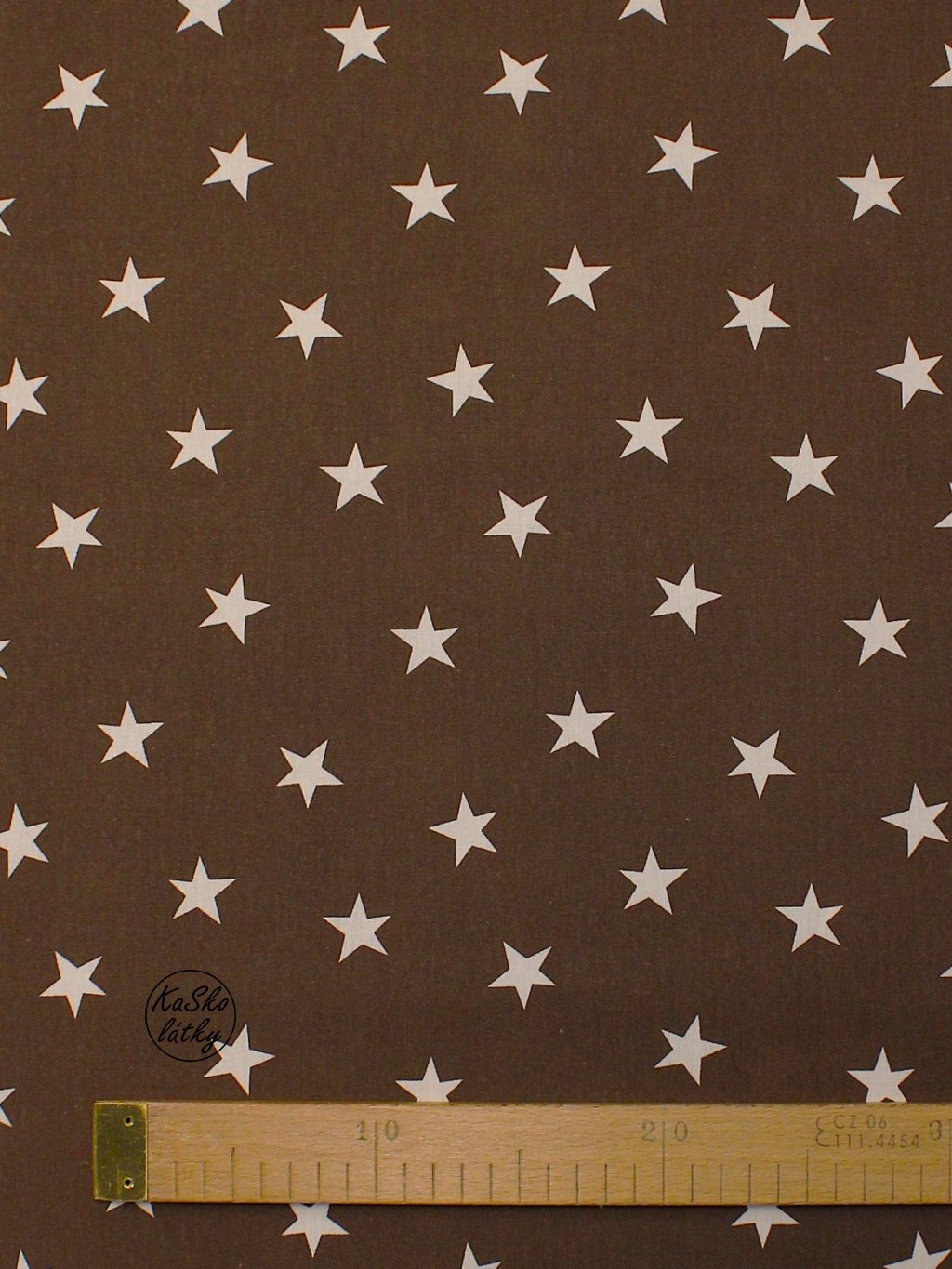 Bavlněná látka bílé hvězdy na tmavě hnědé