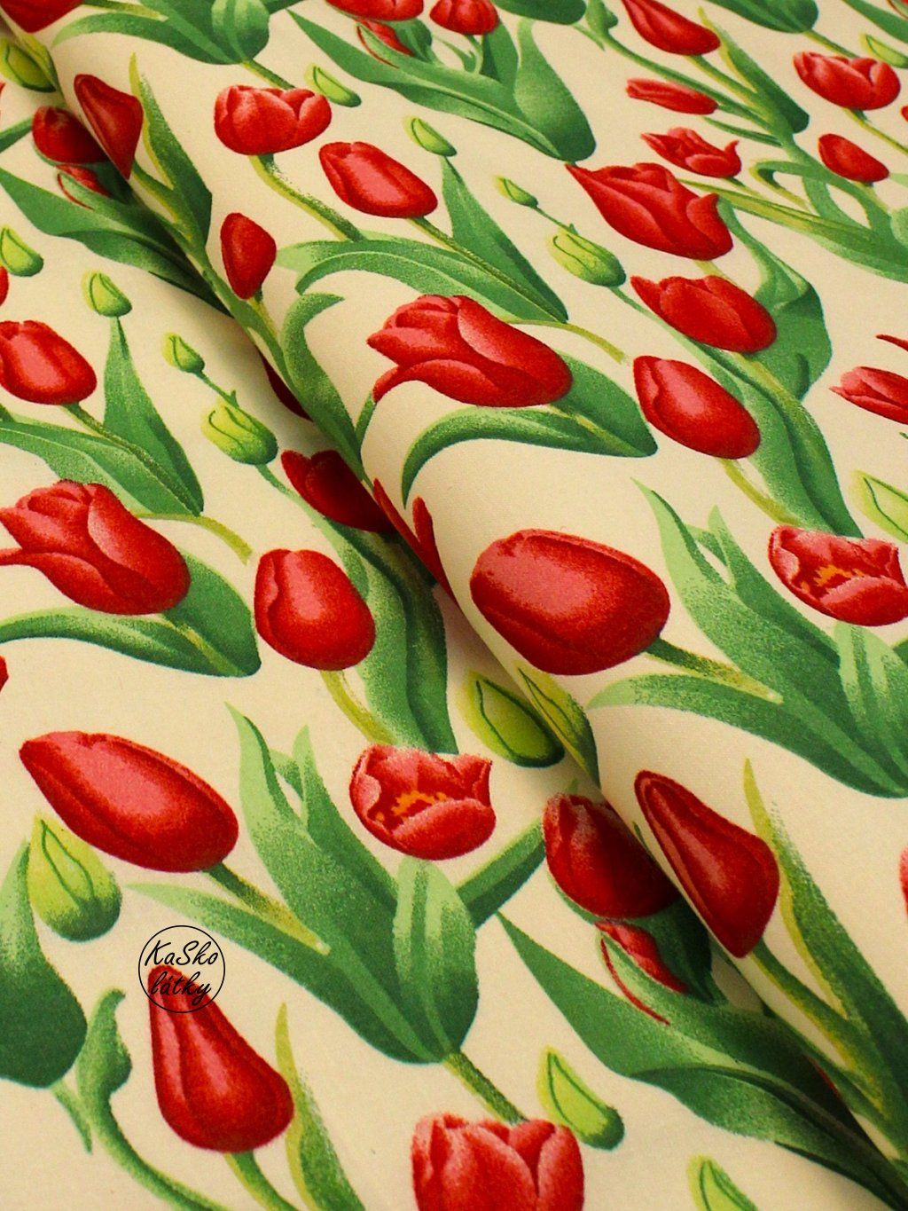 Bavlněná látka červené tulipány