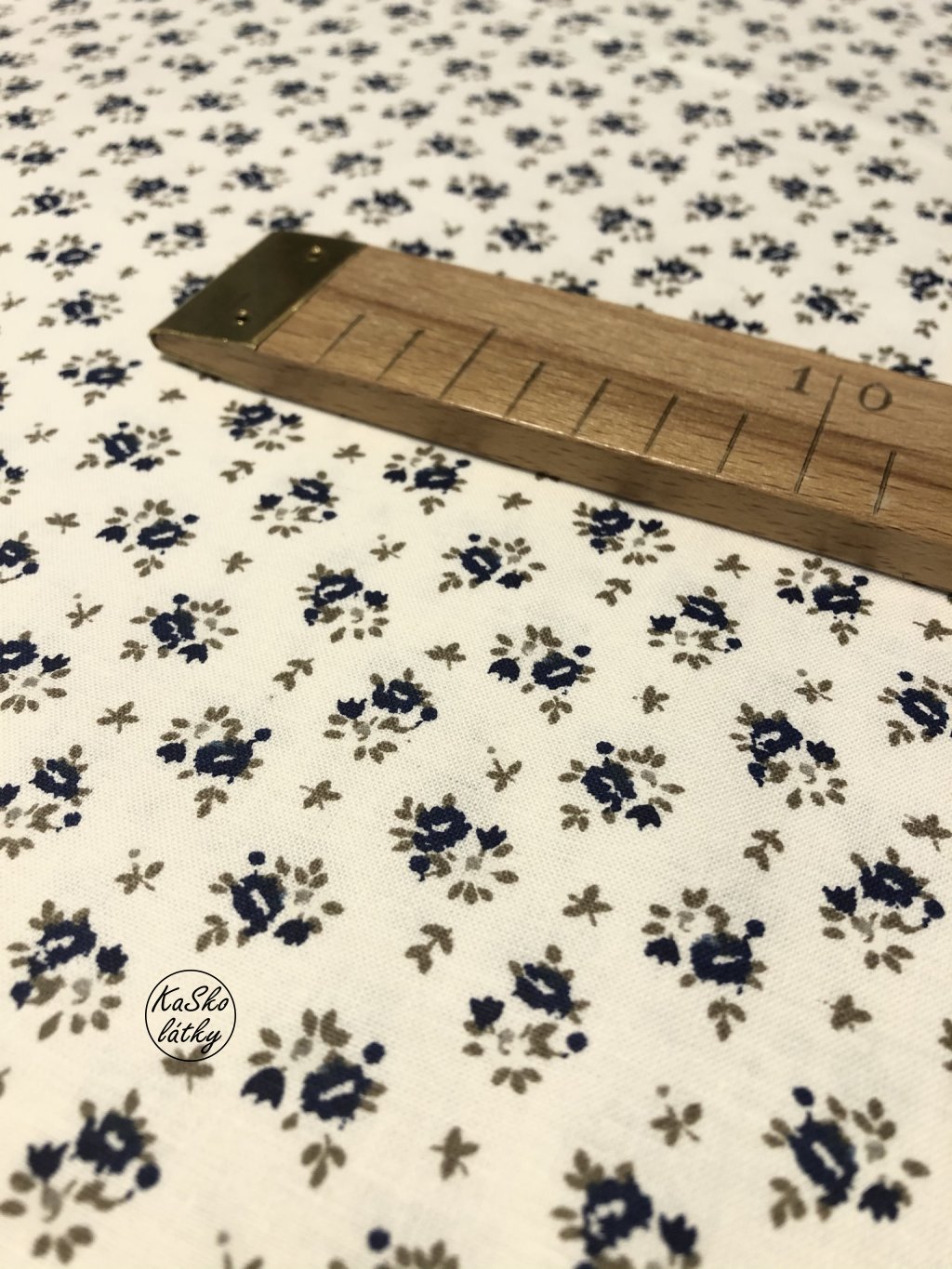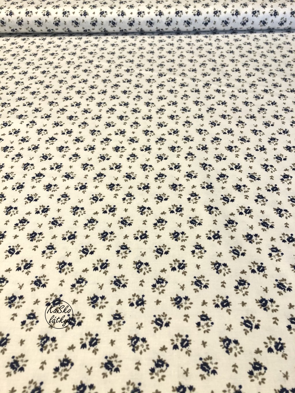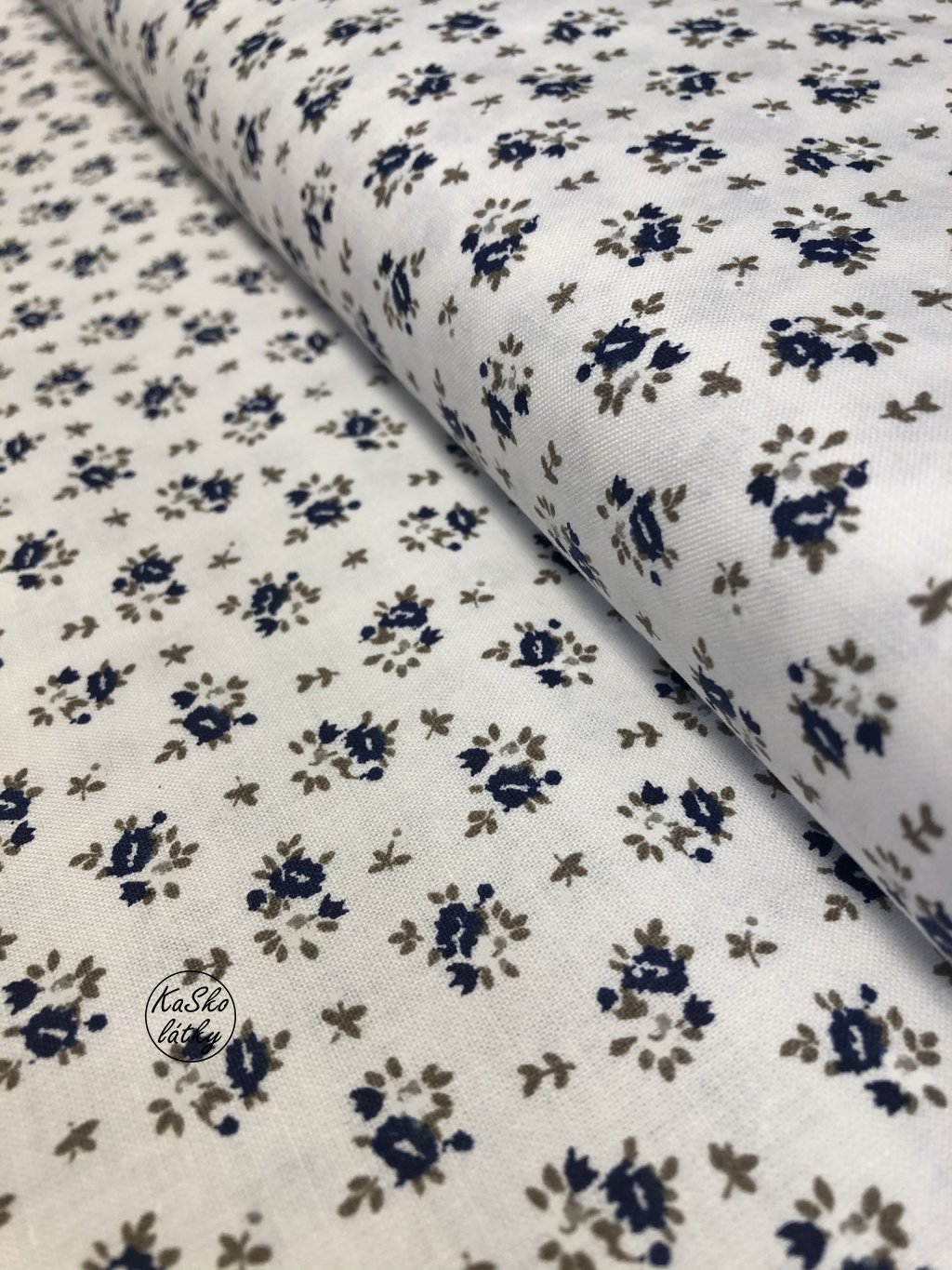 Bavlněná látka drobné modré kvítky na bílé
