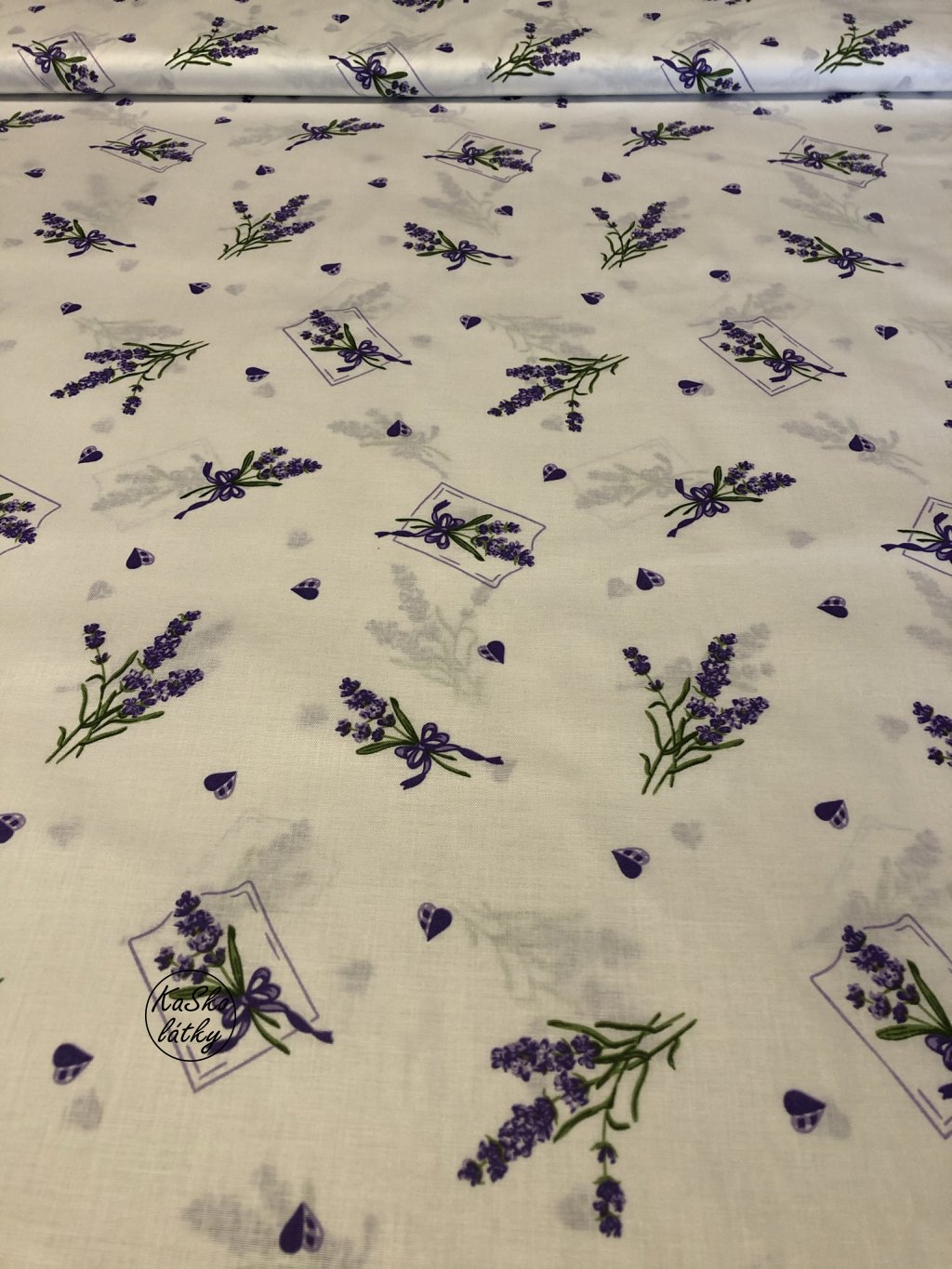 Bavlněná látka levandule na bílé