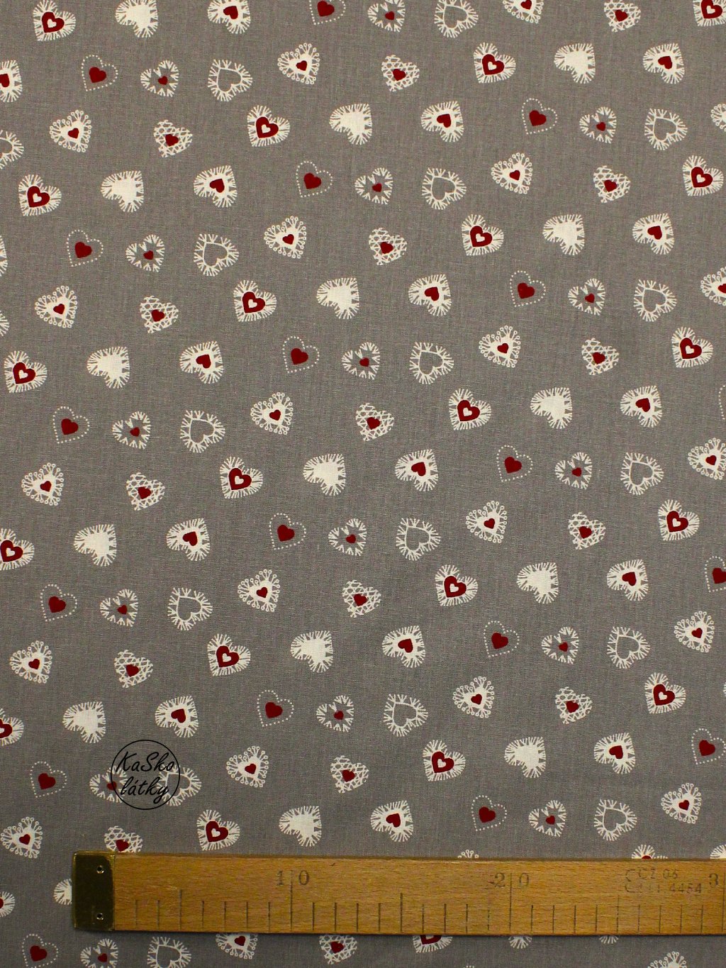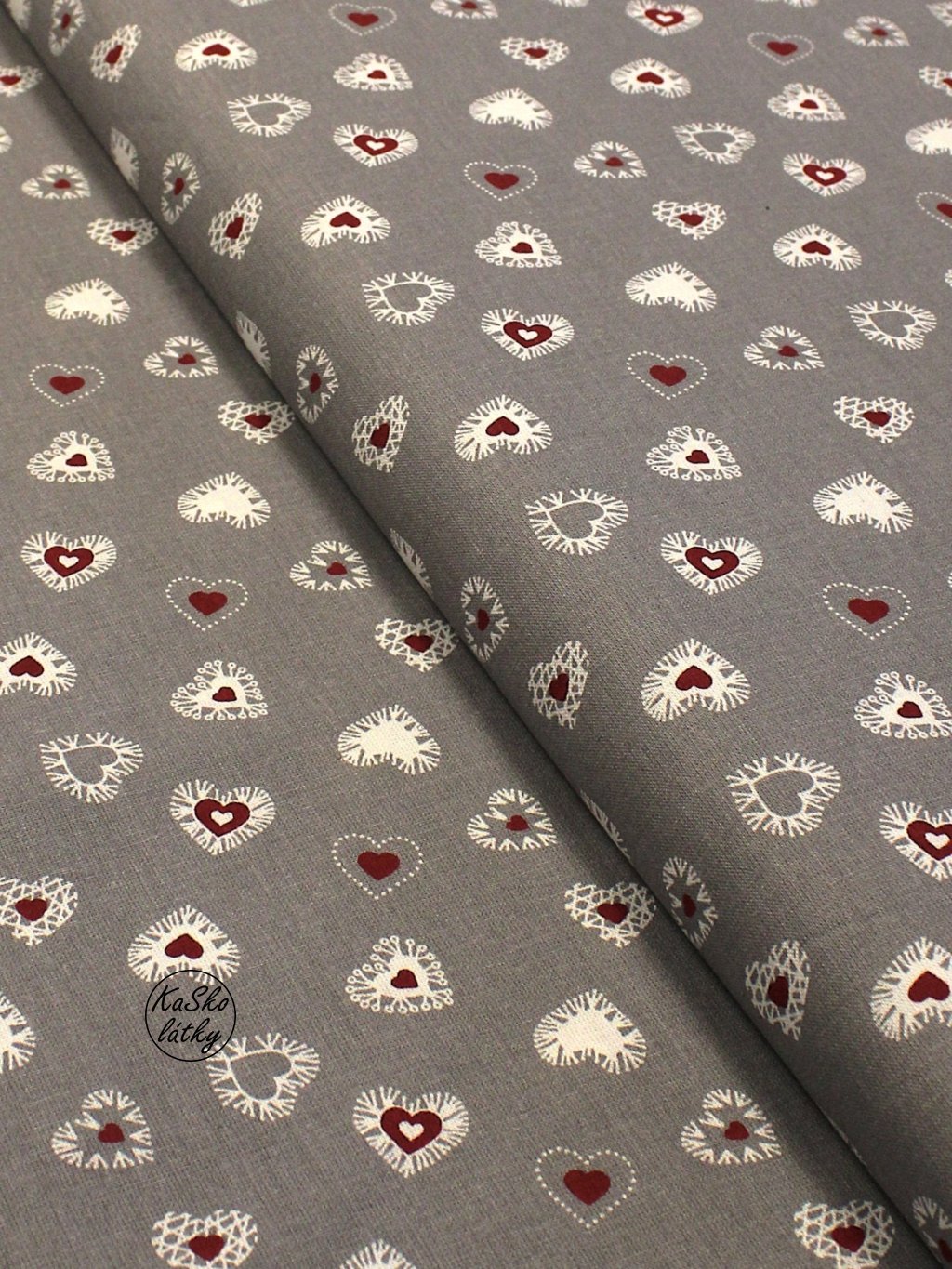 Bavlněná látka srdíčka na šedé