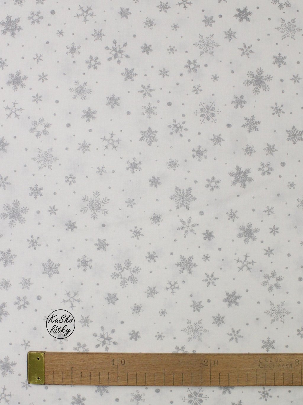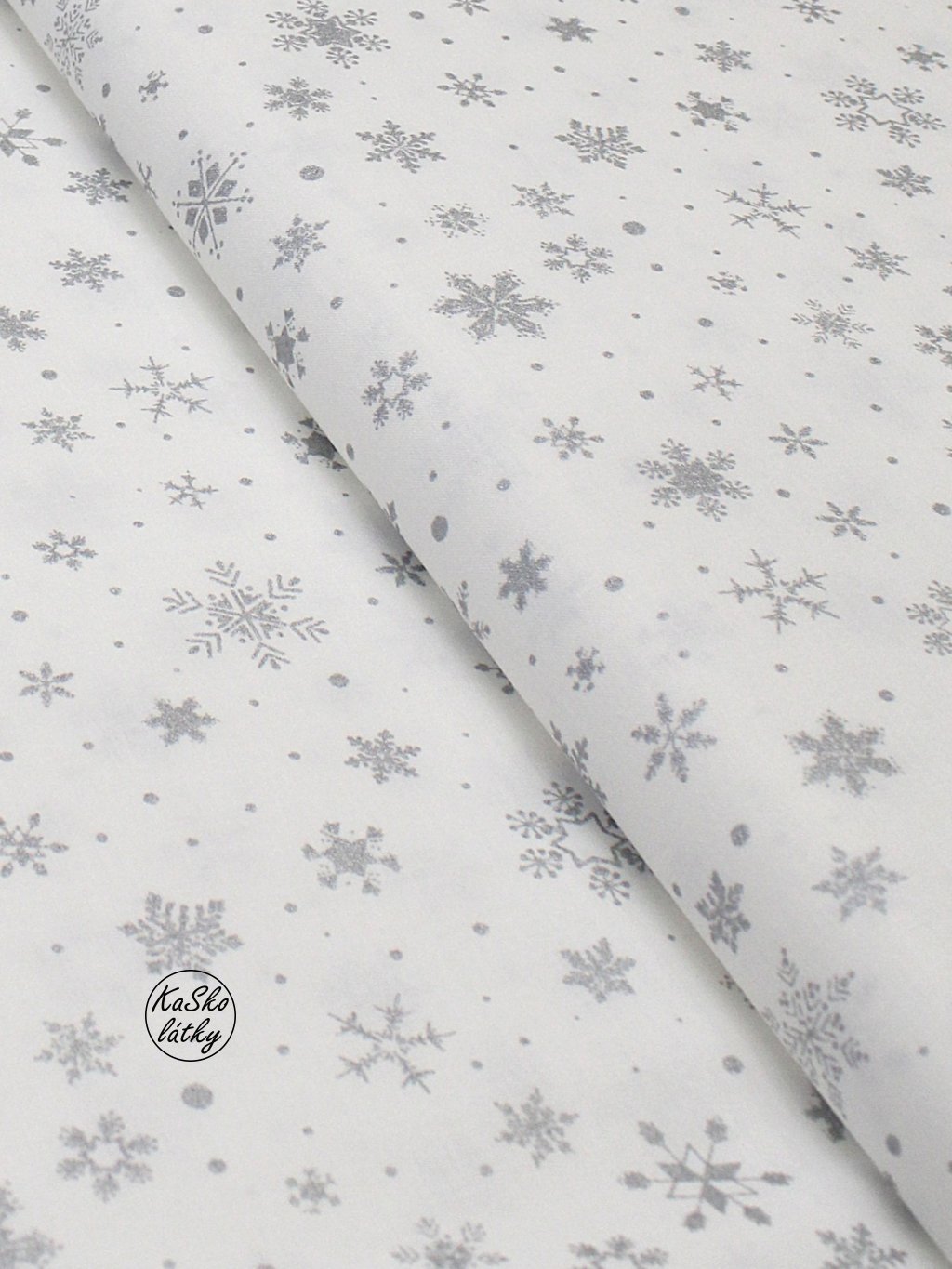 Bavlněná látka střední stříbrné sněhové vločky