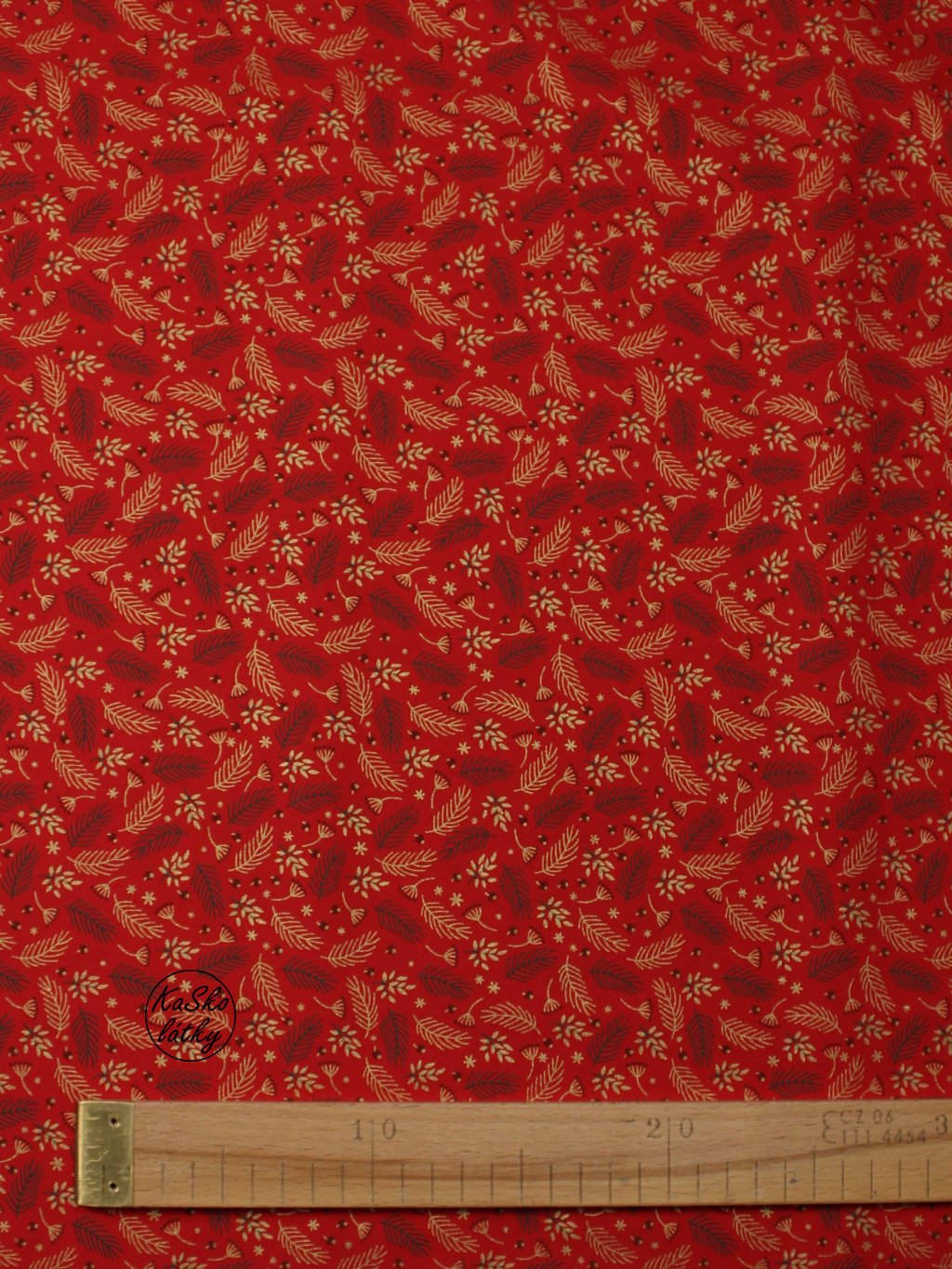Bavlněná látka větvičky na červené