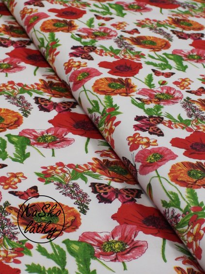 Bavlněná látka vlčí máky a motýli