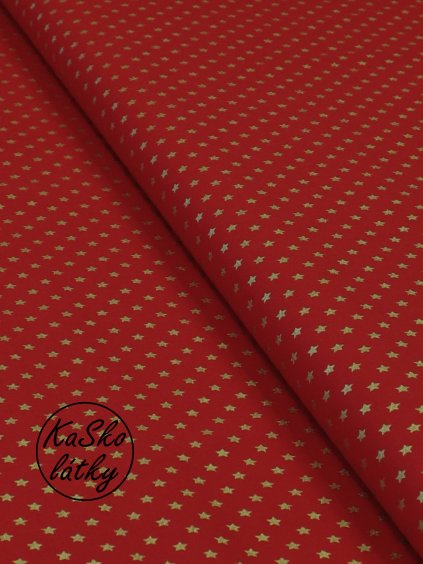 Bavlněná látka zlaté vločky na červené
