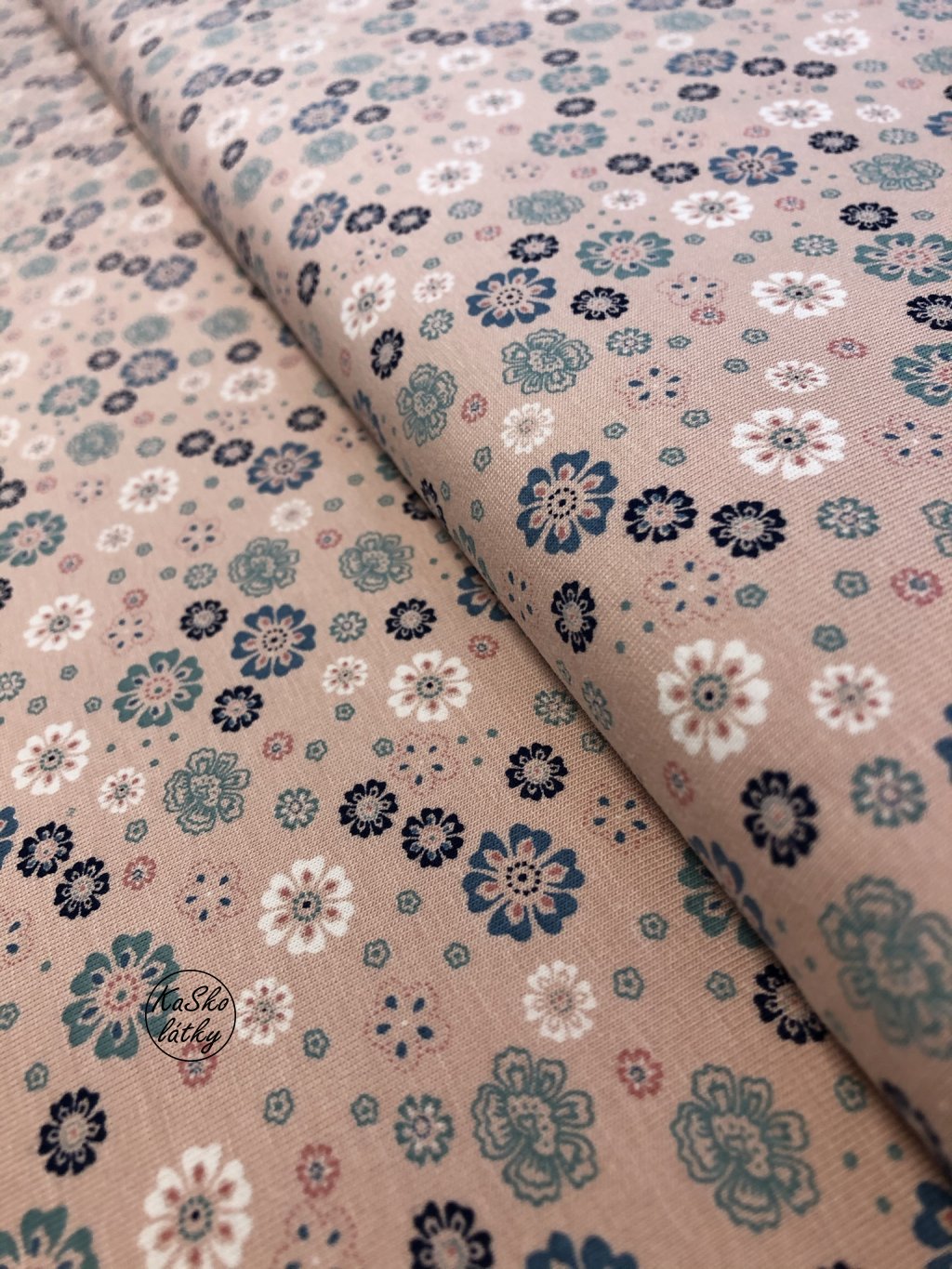 Bavlněný úplet květy na světle růžové - LÁTKA S VADOU