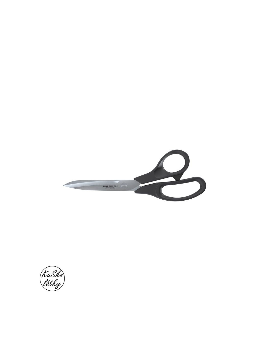 Krejčovské nůžky, velikost 8,5" (21,5 cm). Čepele z nerezové oceli AISI 420 W. 1.4028, tvrdost oceli 53-54 HRC, rukojeť z černého nylonu PA6.