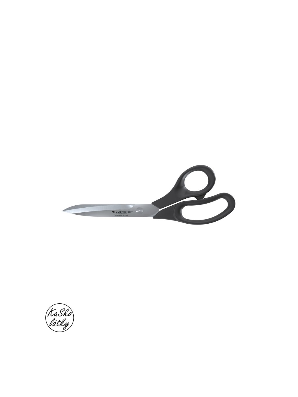 Krejčovské nůžky, velikost 9,5" (24,5 cm). Čepele z nerezové oceli AISI 420 W. 1.4028, tvrdost oceli 53-54 HRC, rukojeť z černého nylonu PA6.