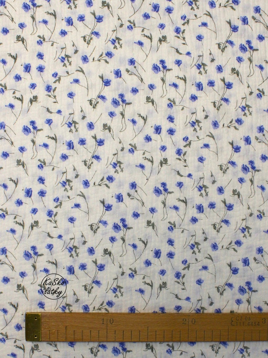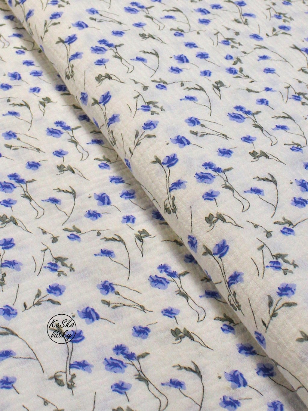 Mušelín modré kytičky