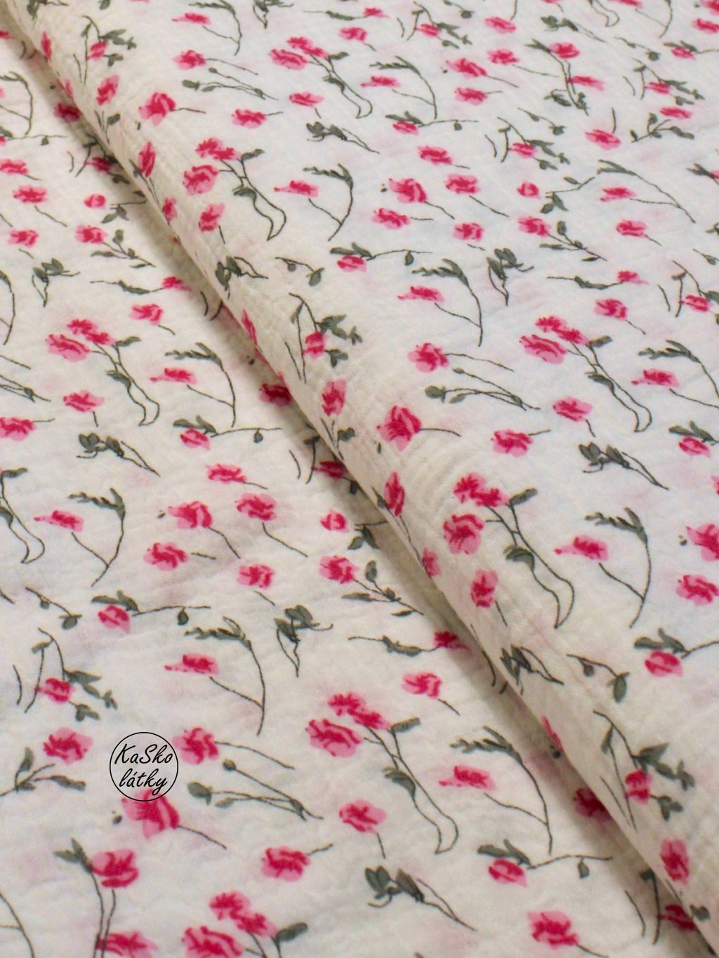Mušelín růžové kytičky