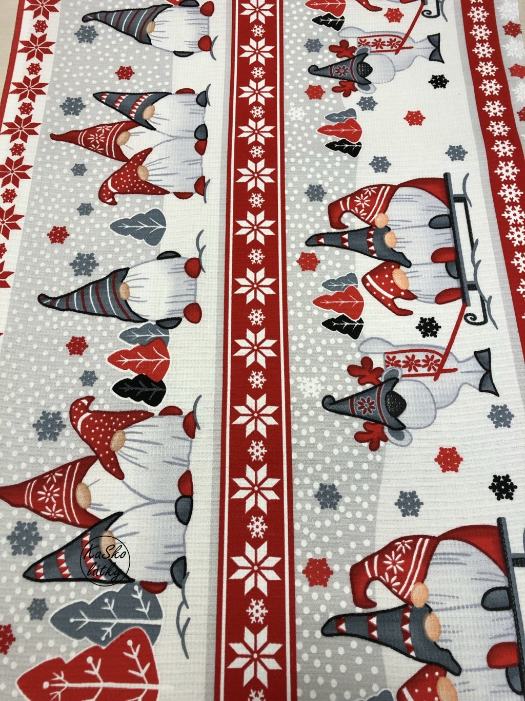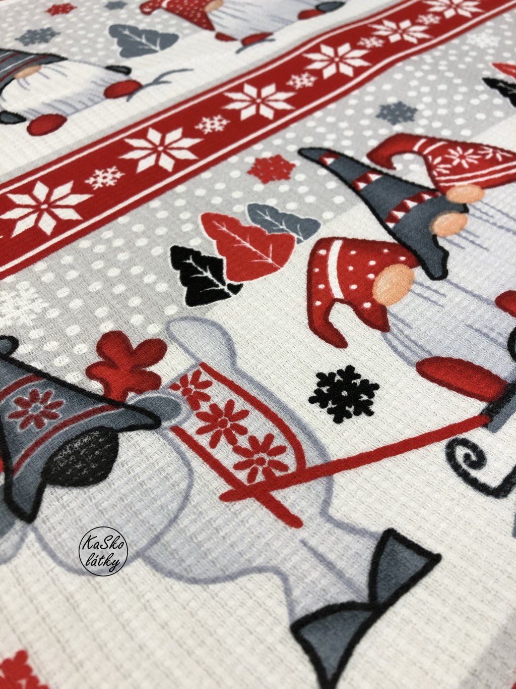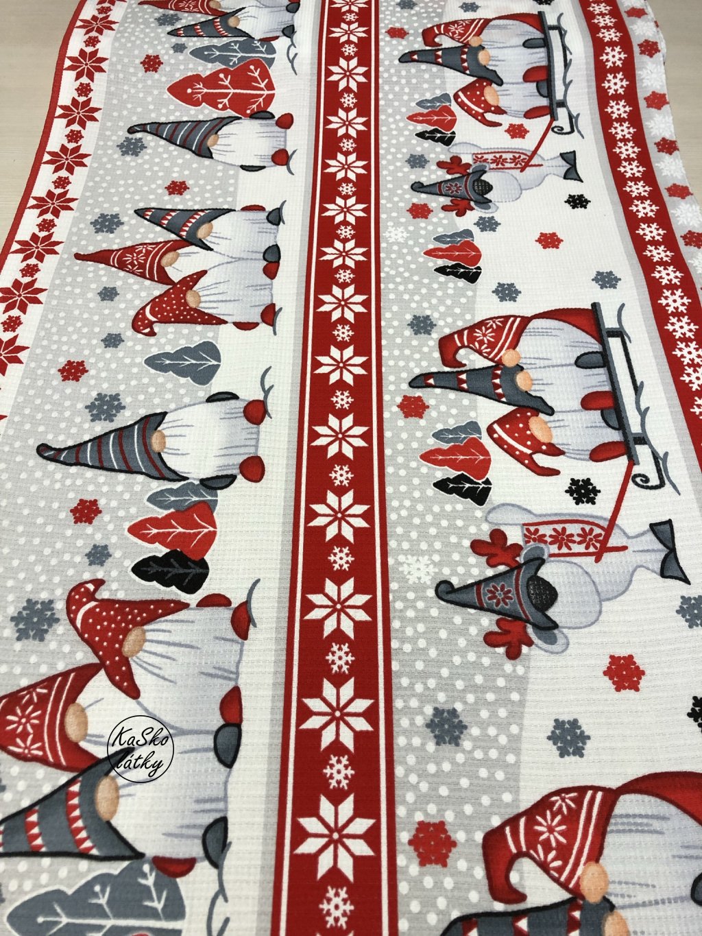 Látka ideální na utěrky. Z rubové strany je vaflovina bílá.