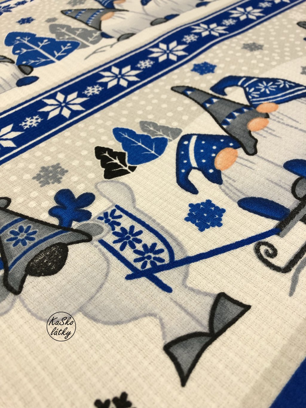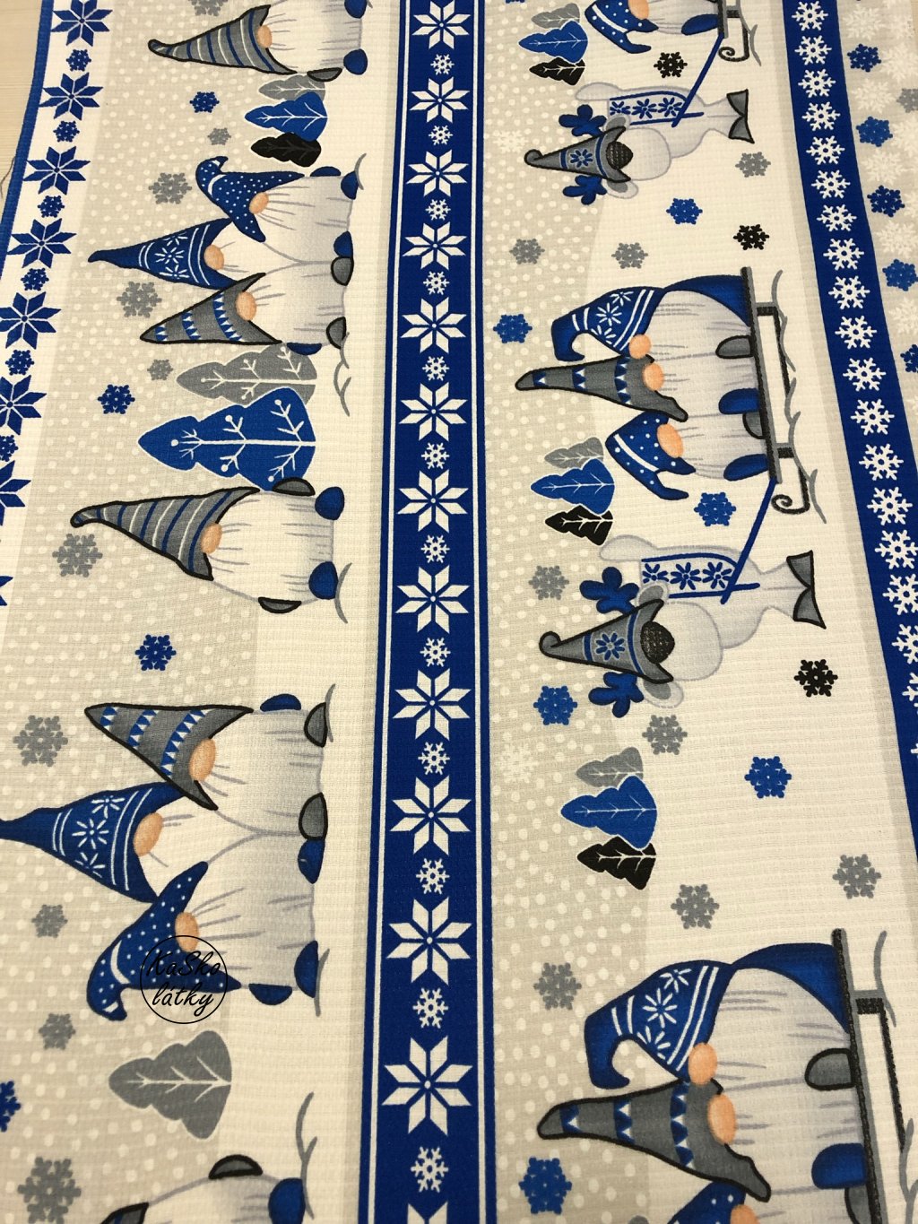Látka ideální na utěrky. Z rubové strany je vaflovina bílá.
