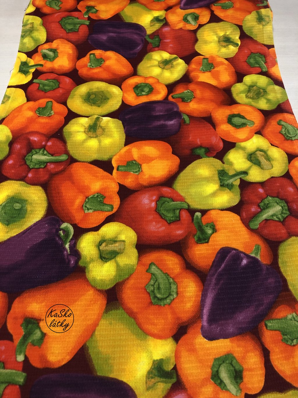 Látka ideální na utěrky. Z rubové strany je vaflovina bílá.