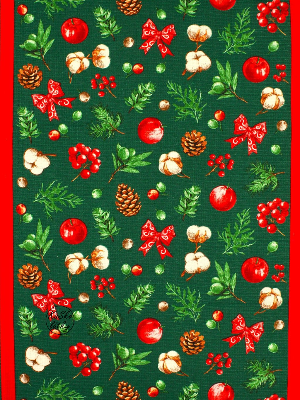 Látka ideální na utěrky. Z rubové strany je vaflovina bílá.