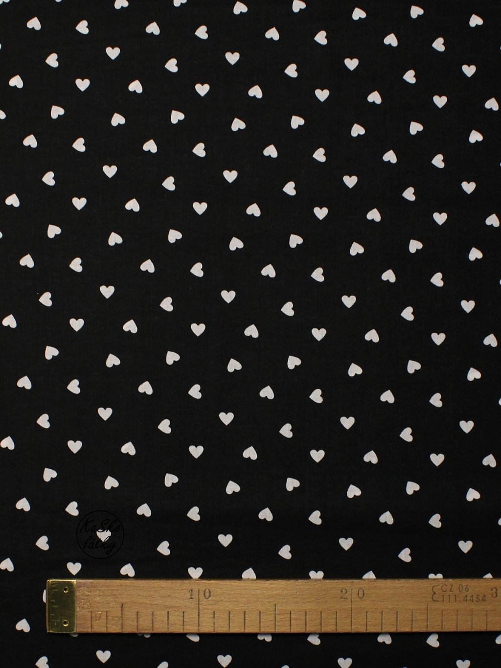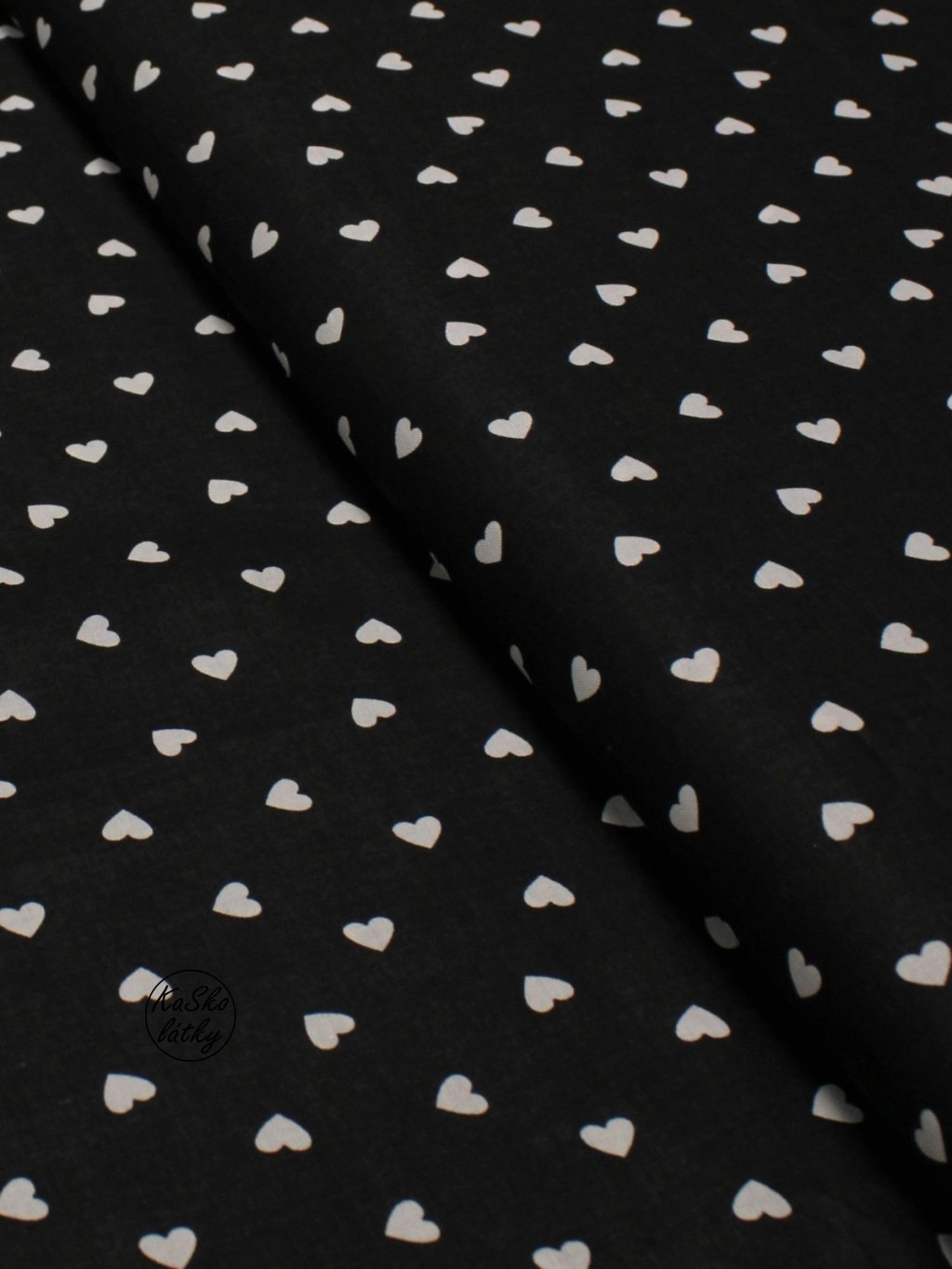Zbytek - Bavlněná látka bílá srdíčka na černé 45 x 160 cm