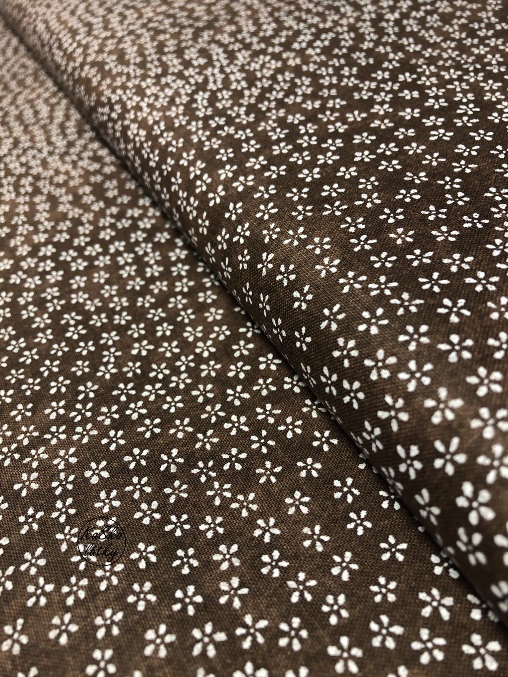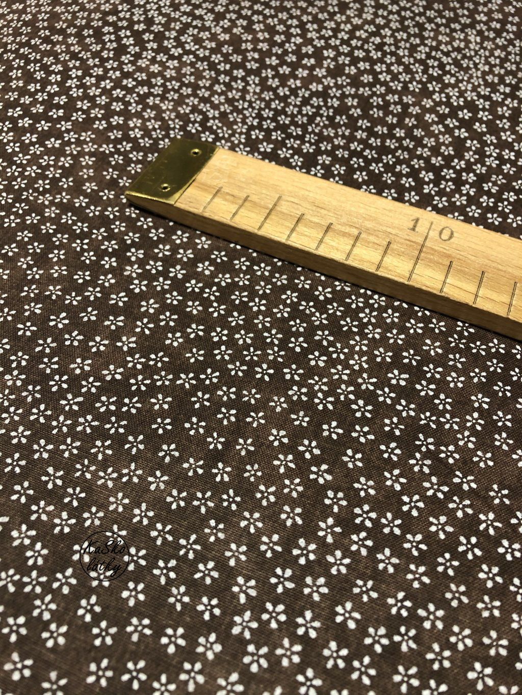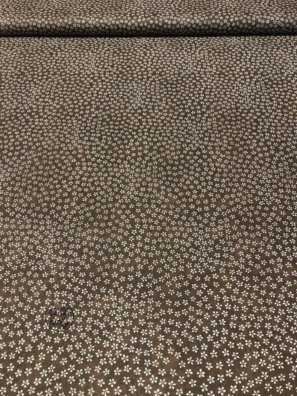 Zbytek - Bavlněná látka bílé kvítky na tmavě hnědé 30 x 140 cm