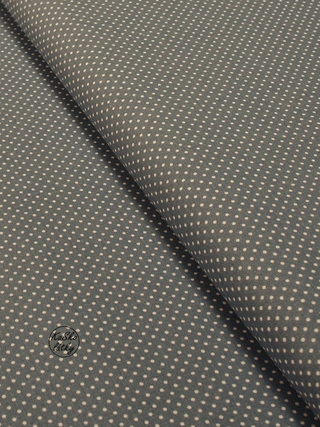 Zbytek - Bavlněná látka bílý puntík na šedé 40 x 150 cm