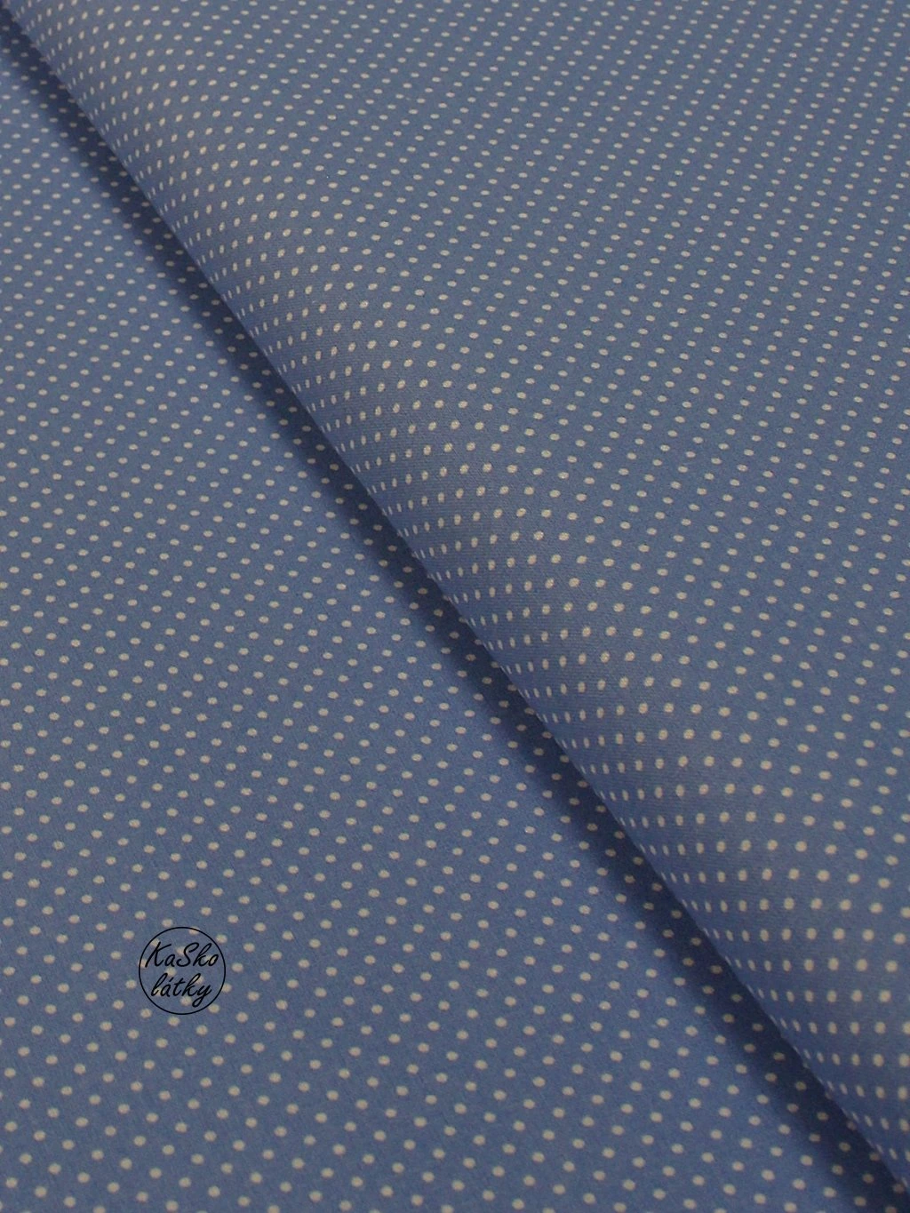 Zbytek - Bavlněná látka bílý puntík na světle modré 40 x 150 cm