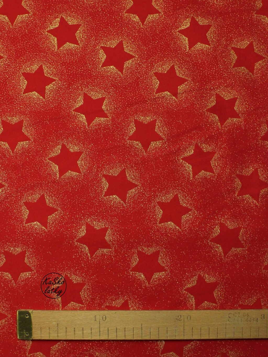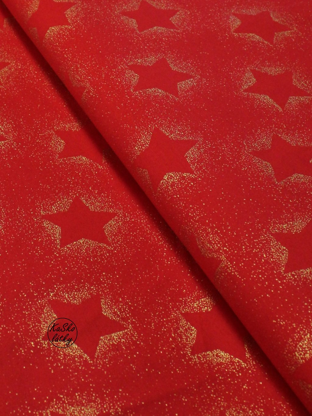 Zbytek - Bavlněná látka červené hvězdy se zlatem 40 x 145 cm