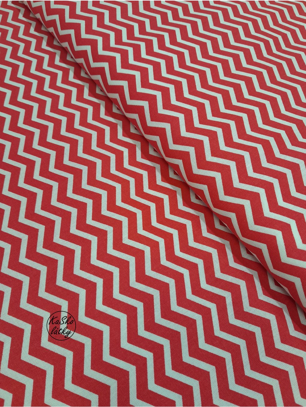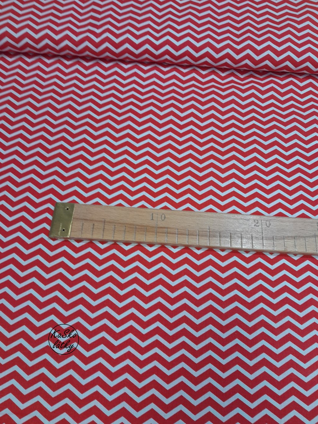 Zbytek - Bavlněná látka červeno-bílý cikcak 70 x 150 cm