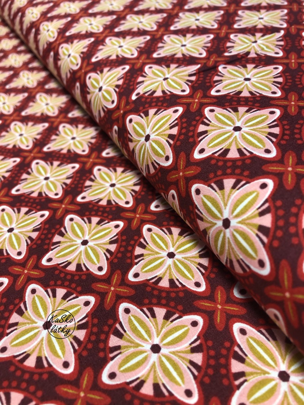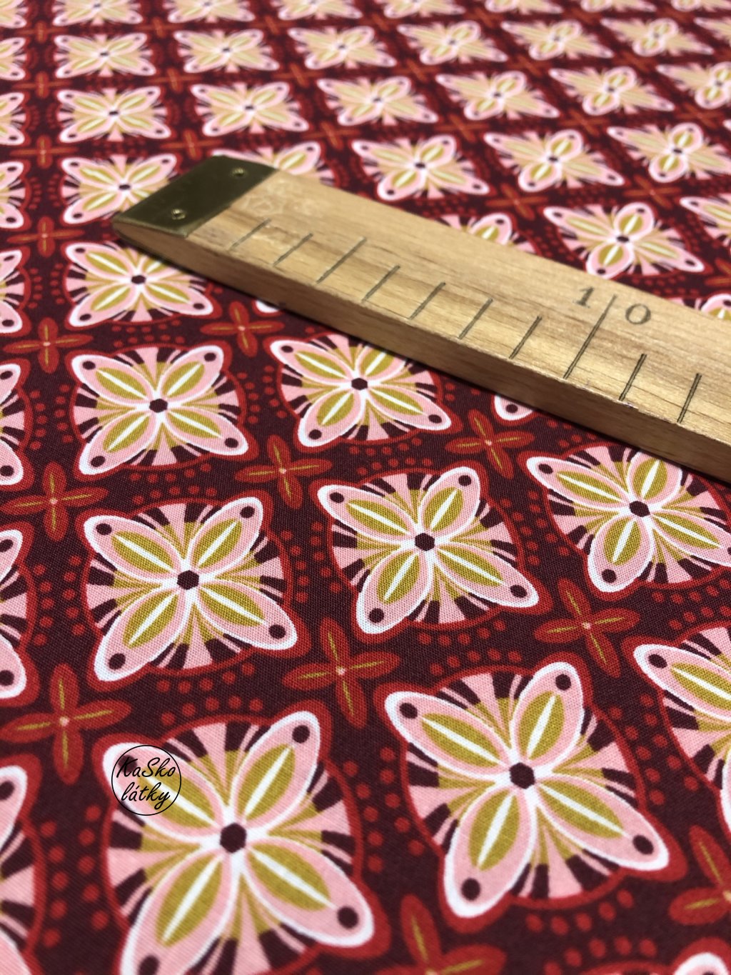 Zbytek - Bavlněná látka červený kaleidoskop 35 x 140 cm