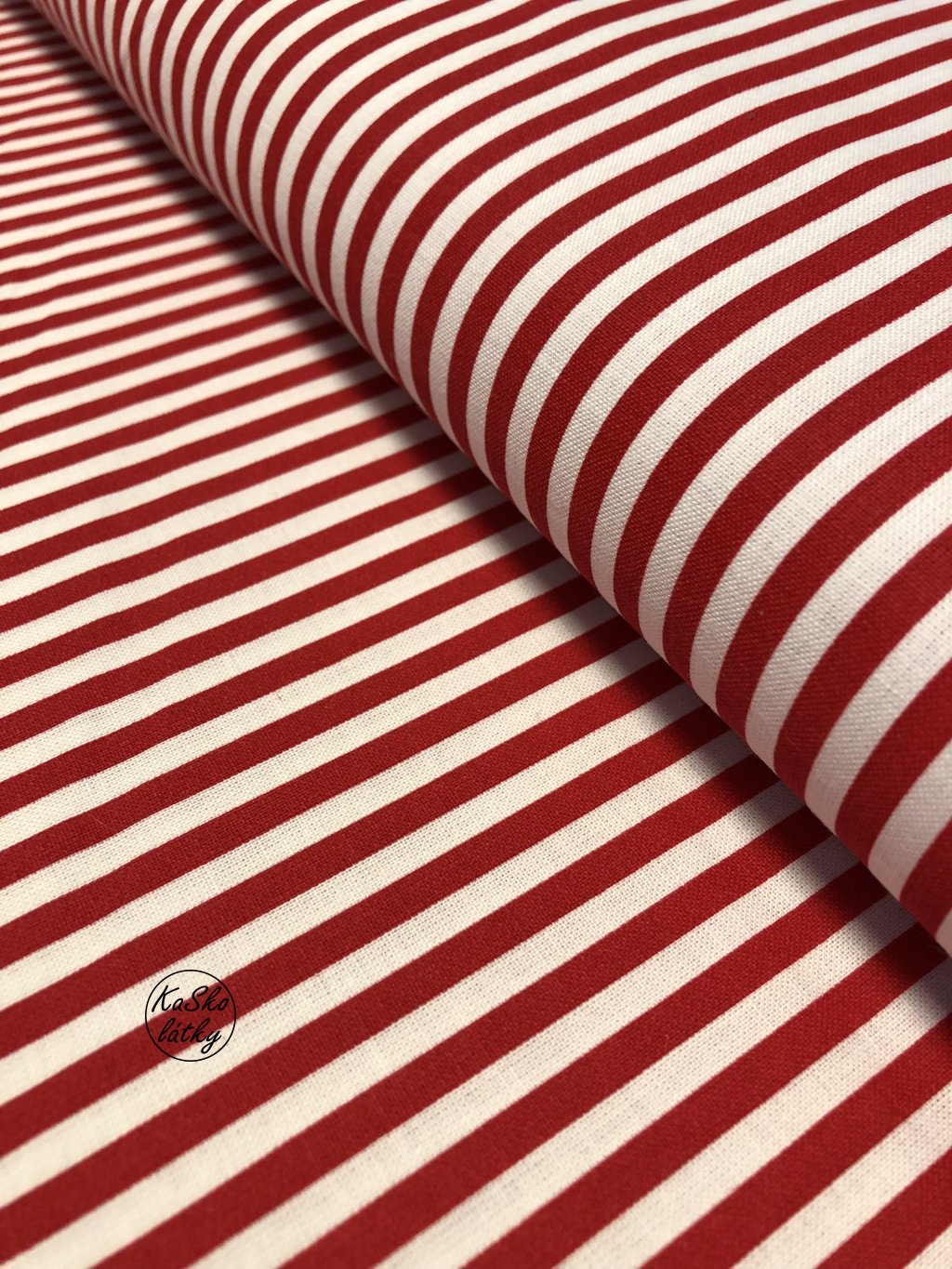 Zbytek - Bavlněná látka červený proužek 50 x 147 cm