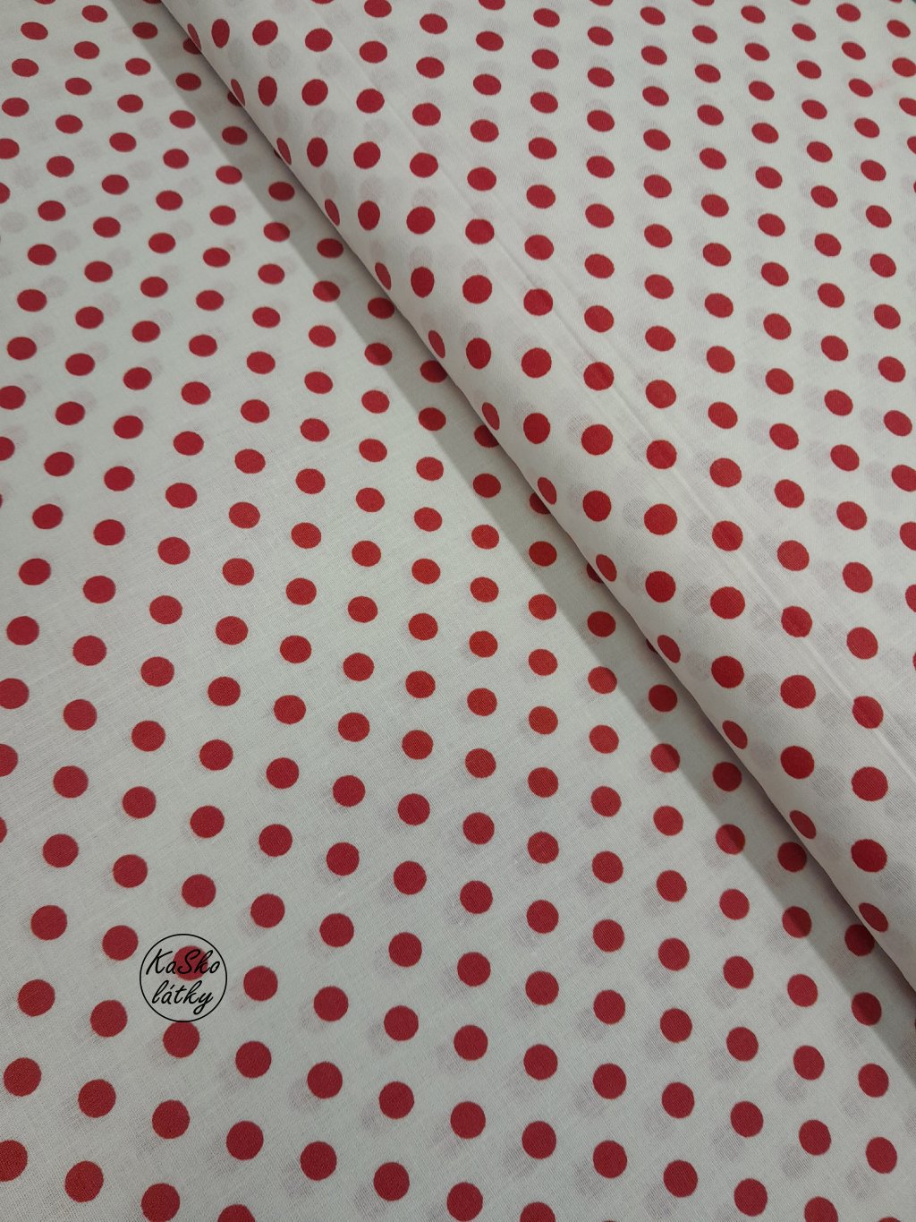 Zbytek - Bavlněná látka červený puntík na bílé 25 x 140