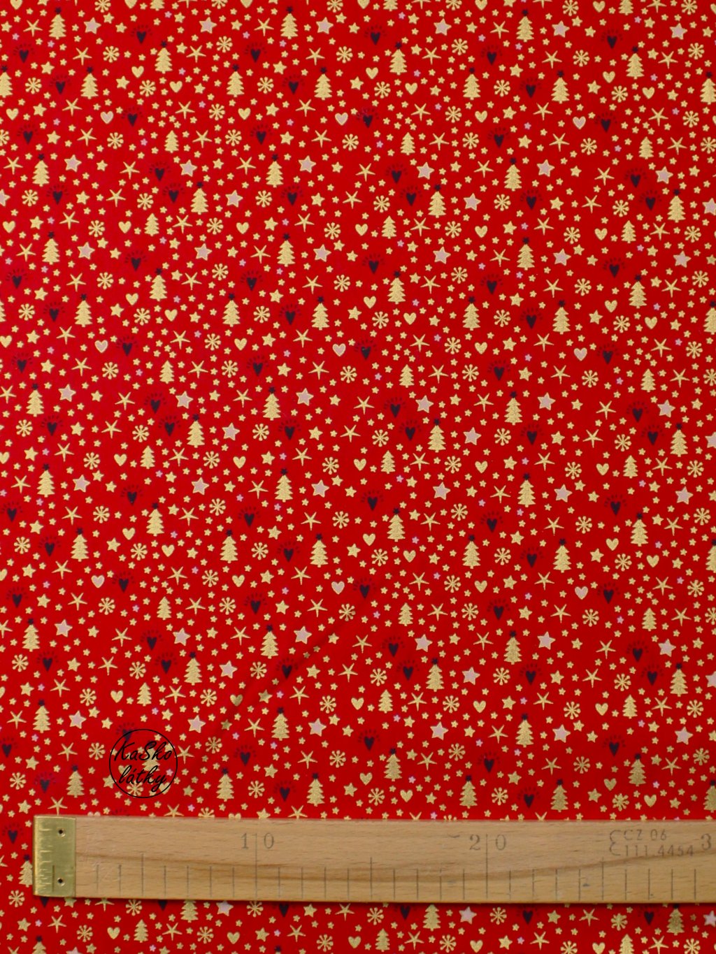 Zbytek - Bavlněná látka drobný vánoční vzor na červené 60 x 145 cm