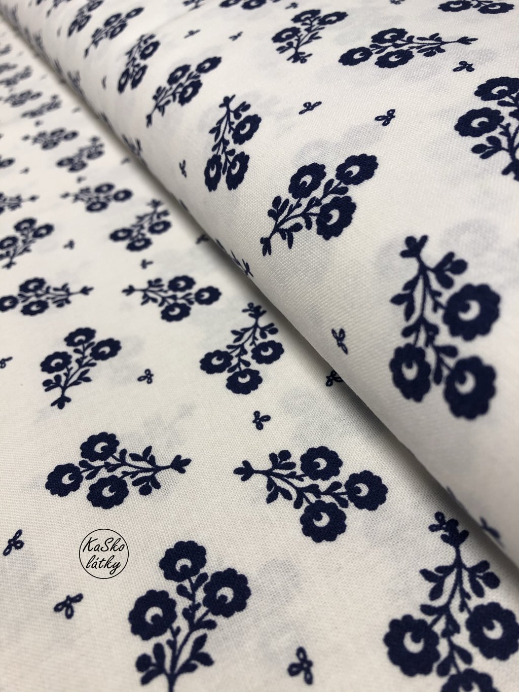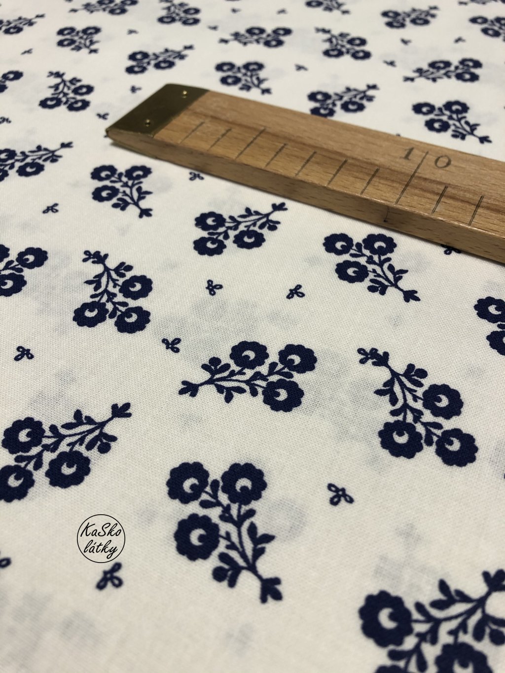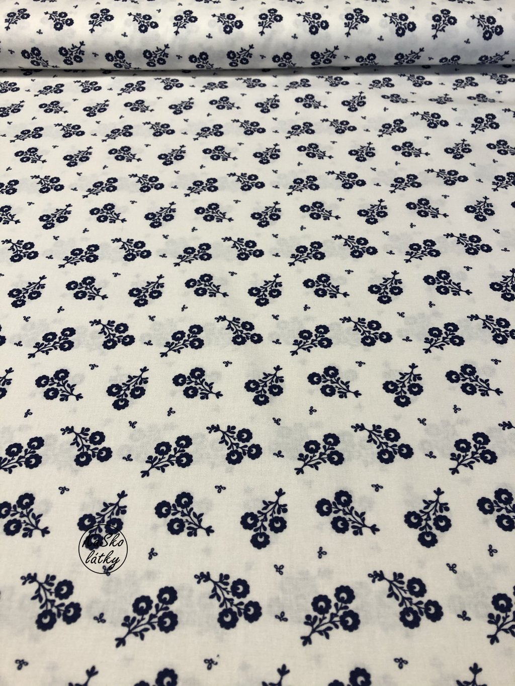 Zbytek - Bavlněná látka folklórní květ modrý na bílé 50 x 150 cm