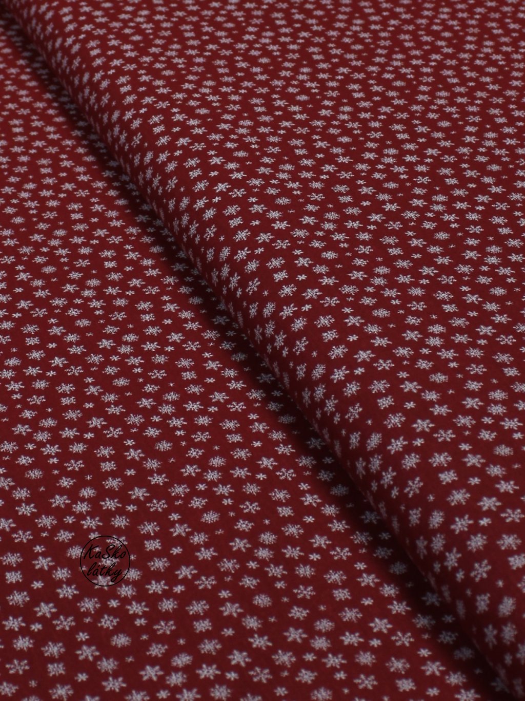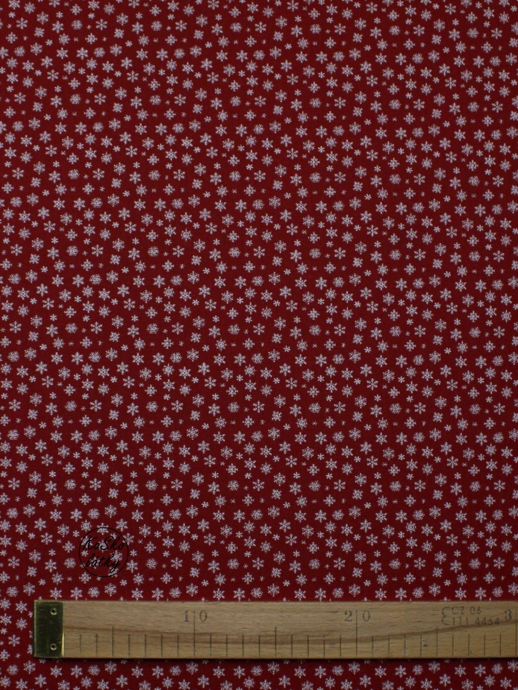 Zbytek - Bavlněná látka malé sněhové vločky na červené 60 x 150 cm