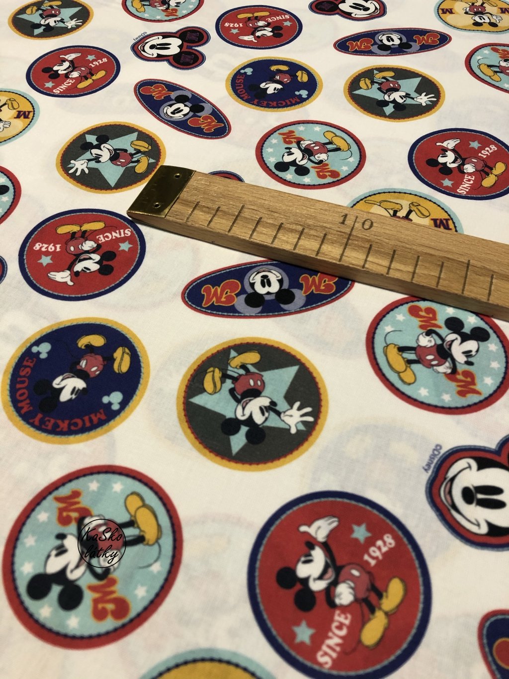 Zbytek - Bavlněná látka Mickey barevné medailonky 45 x 150 cm