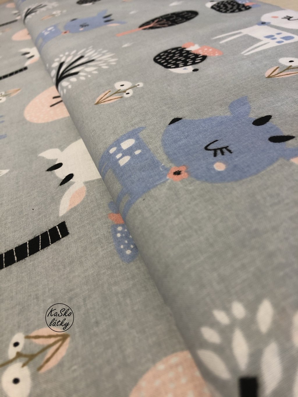 Zbytek - Bavlněná látka srnečci na šedé 40 x 160 cm