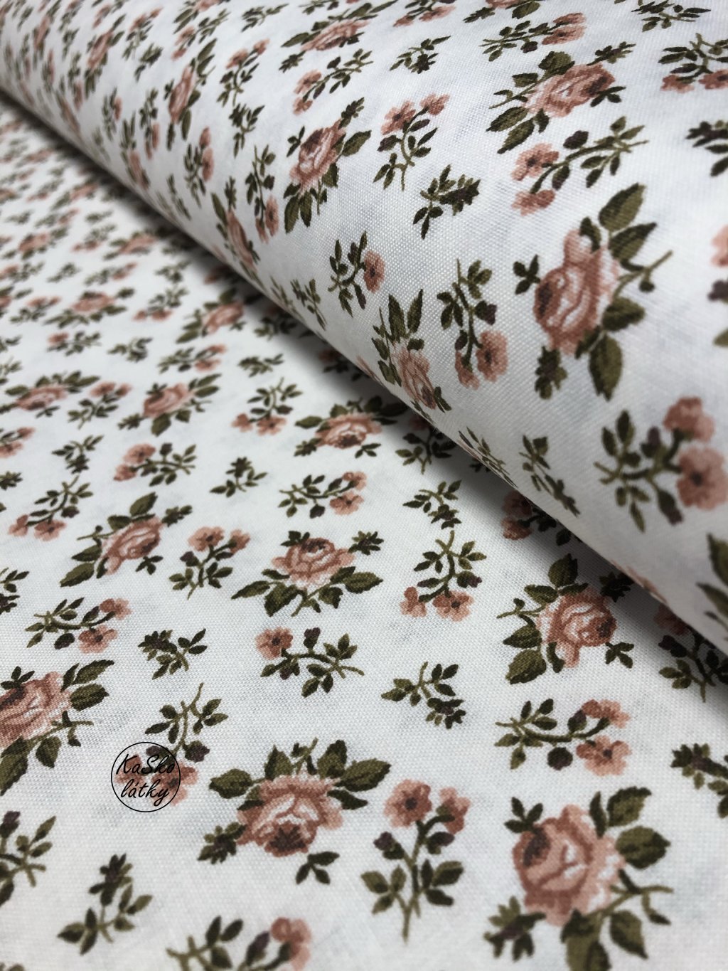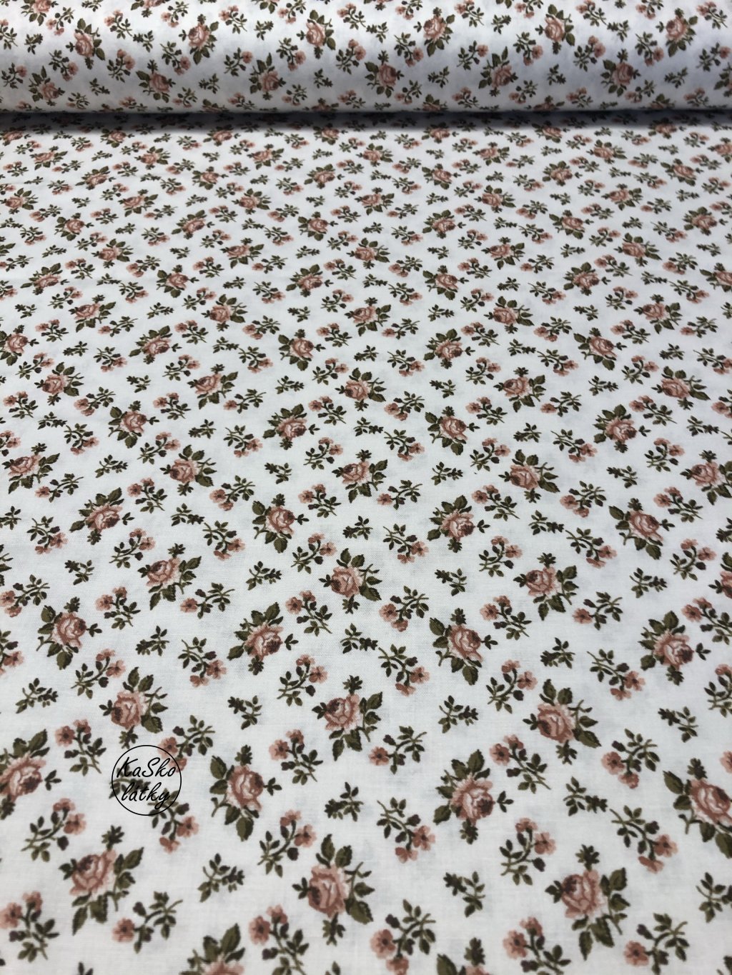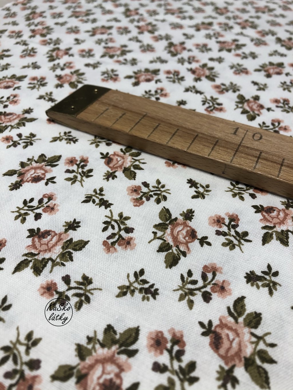 Zbytek - Bavlněná látka starorůžové květy na krémové 75 x 140 cm