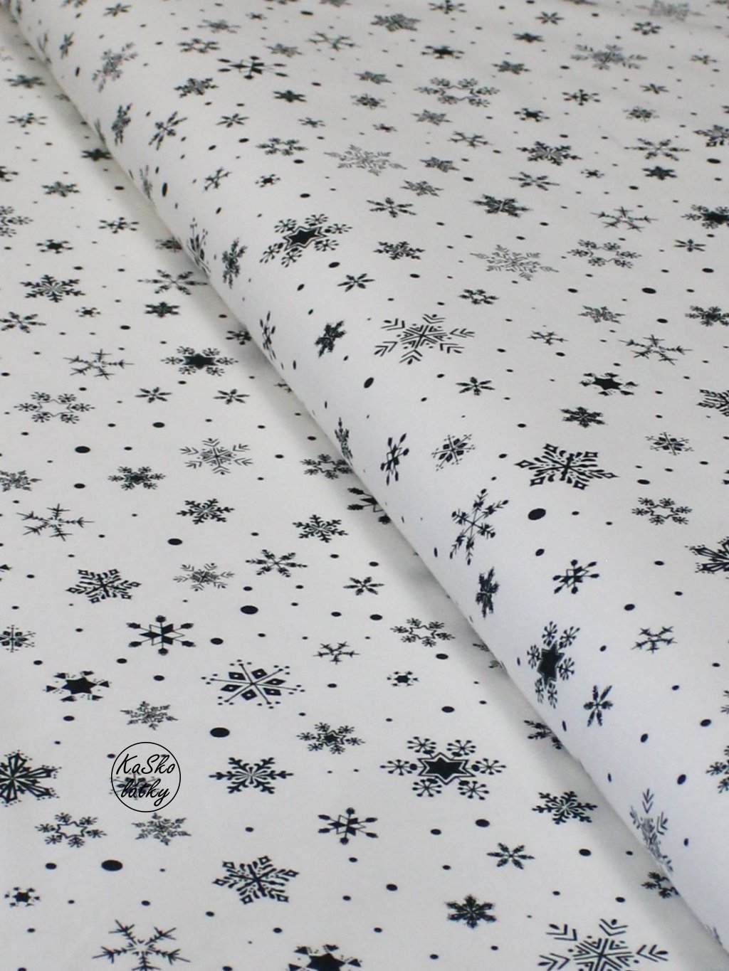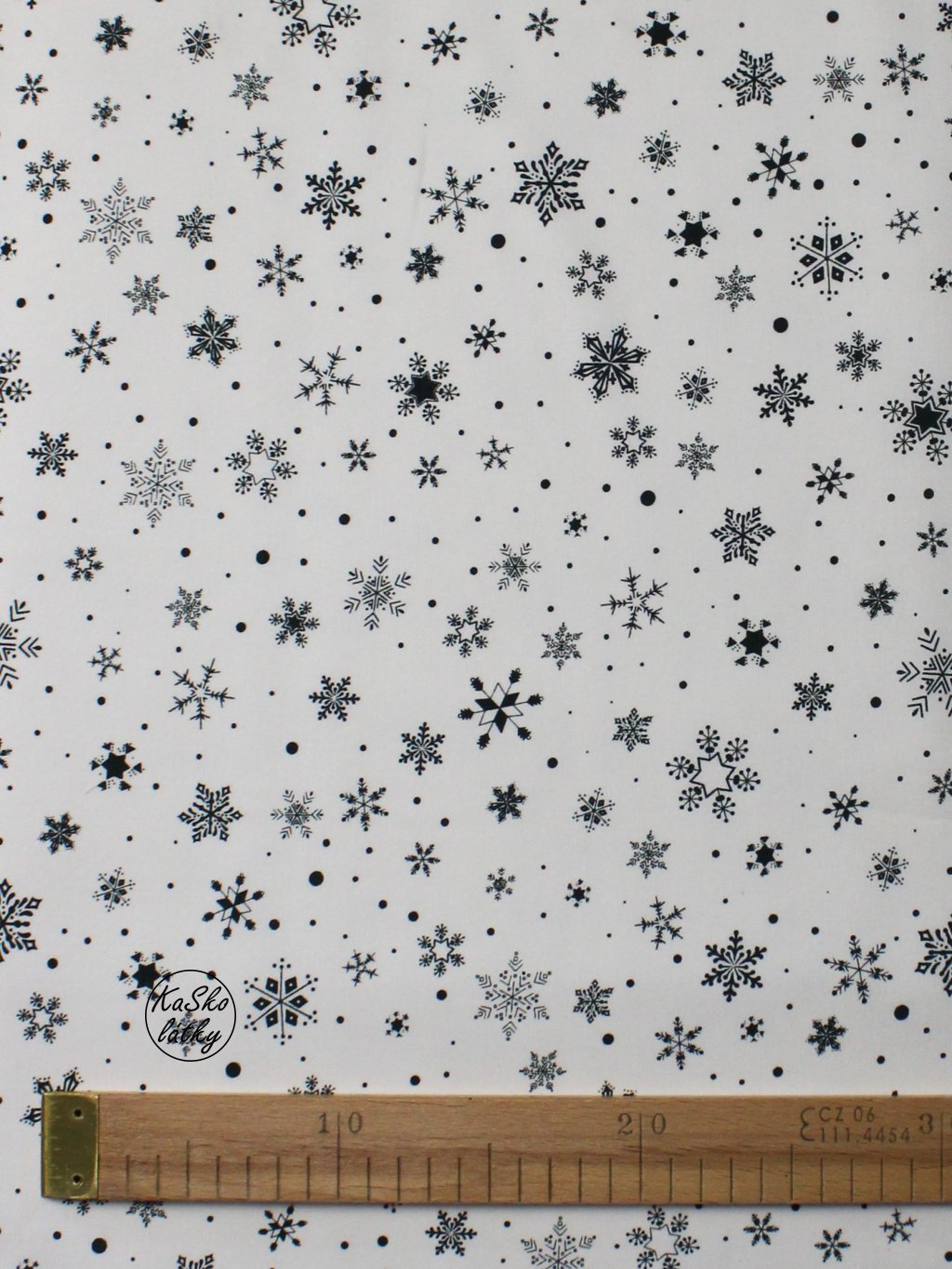 Zbytek - Bavlněná látka střední zelené sněhové vločky 70 x 150 cm