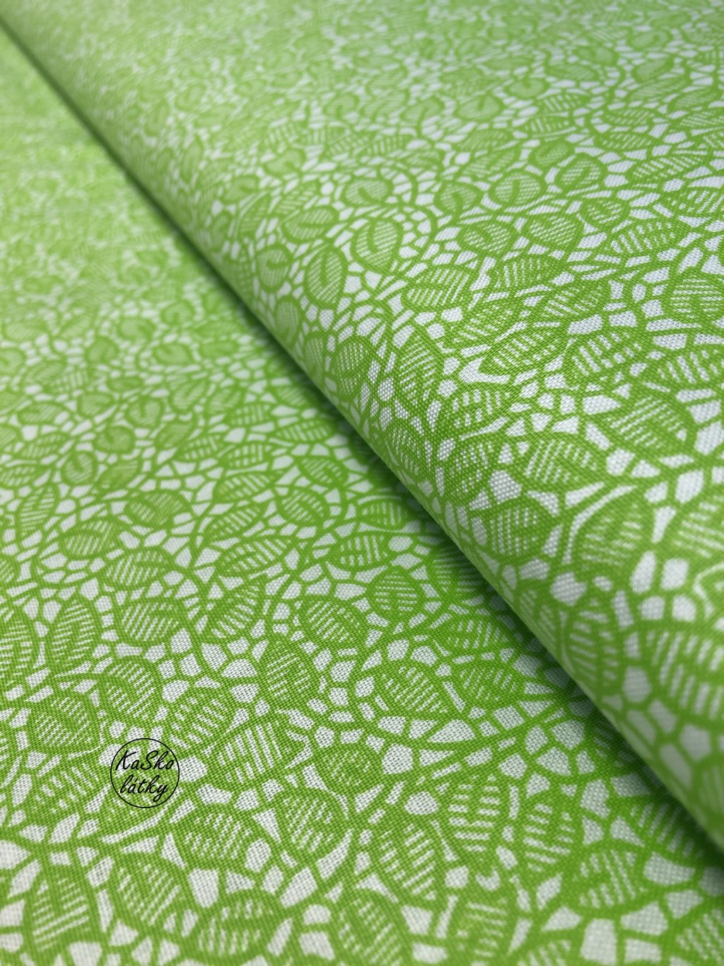 Zbytek - Bavlněná látka světle zelené lístky 20 x 140 cm