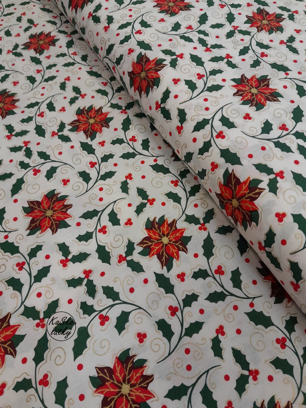 Zbytek - Bavlněná látka vánoční hvězda na krémové 45 x 145 cm