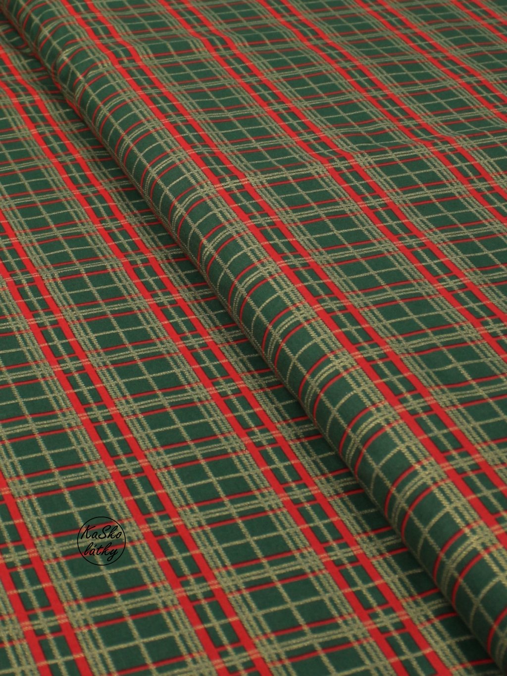 Zbytek - Bavlněná látka zeleno-zlaté káro 60 x 150 cm