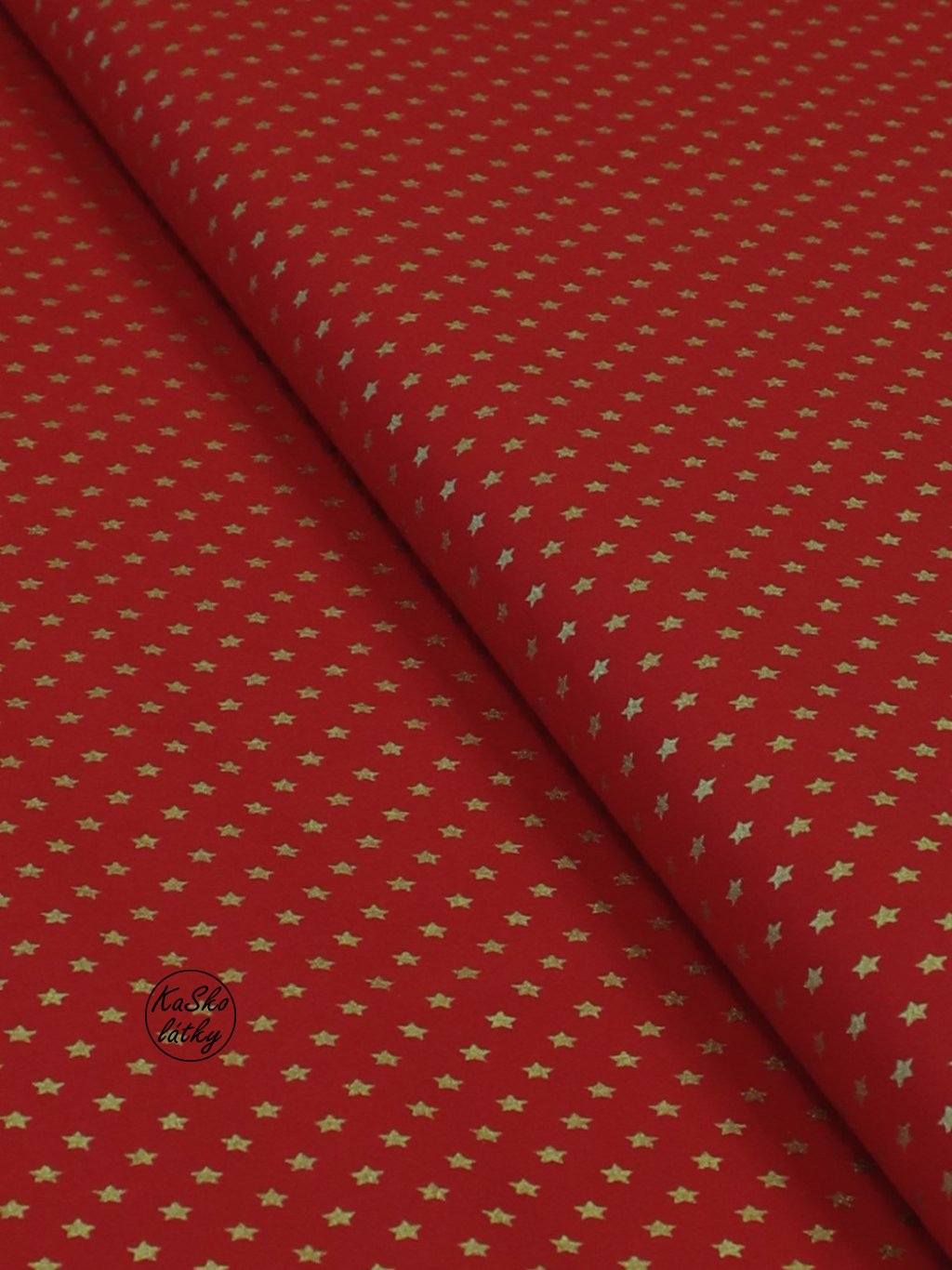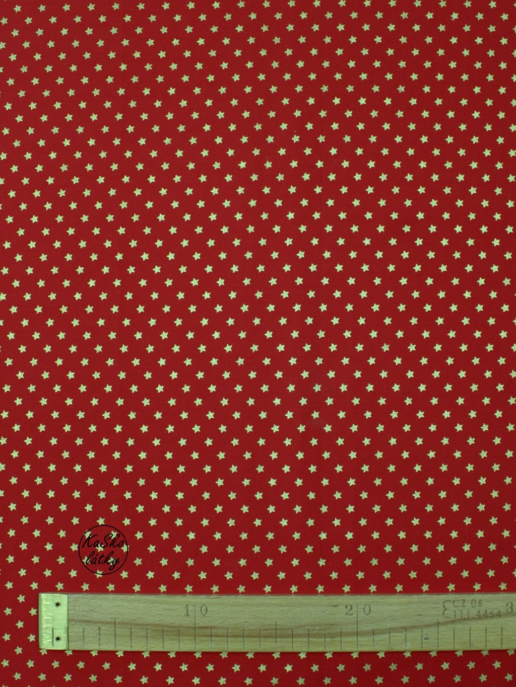 Zbytek - Bavlněná látka zlaté hvězdičky na červené 45 x 145 cm