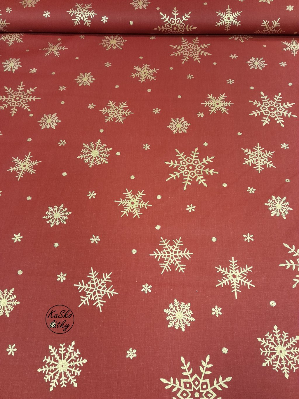 Zbytek - Bavlněná látka zlaté vločky velké na vínové 45 x 150 cm