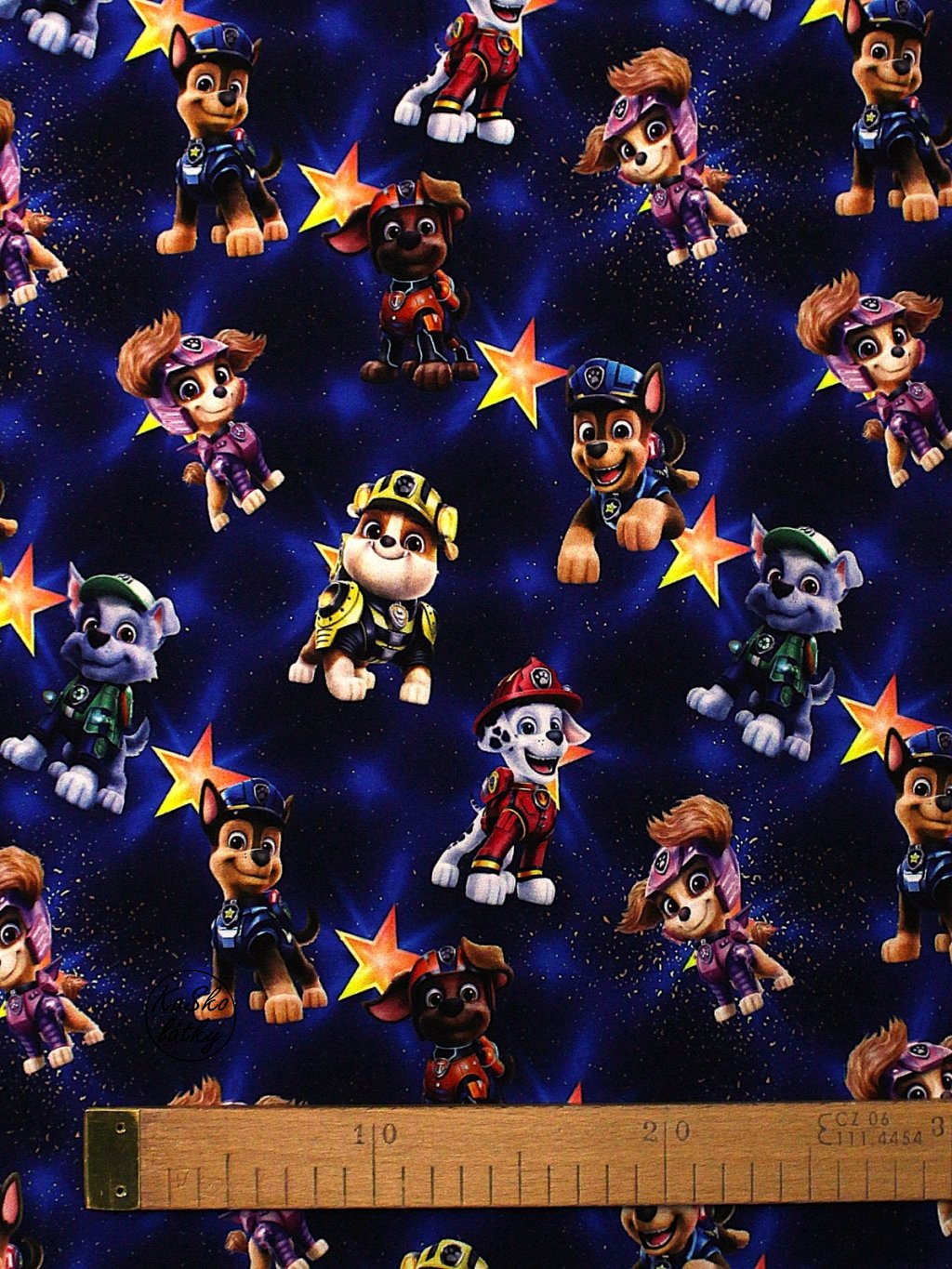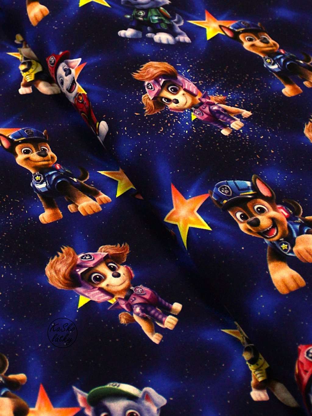 Zbytek - Bavlněná teplákovina Tlapková patrola a hvězdy 50 x 180 cm