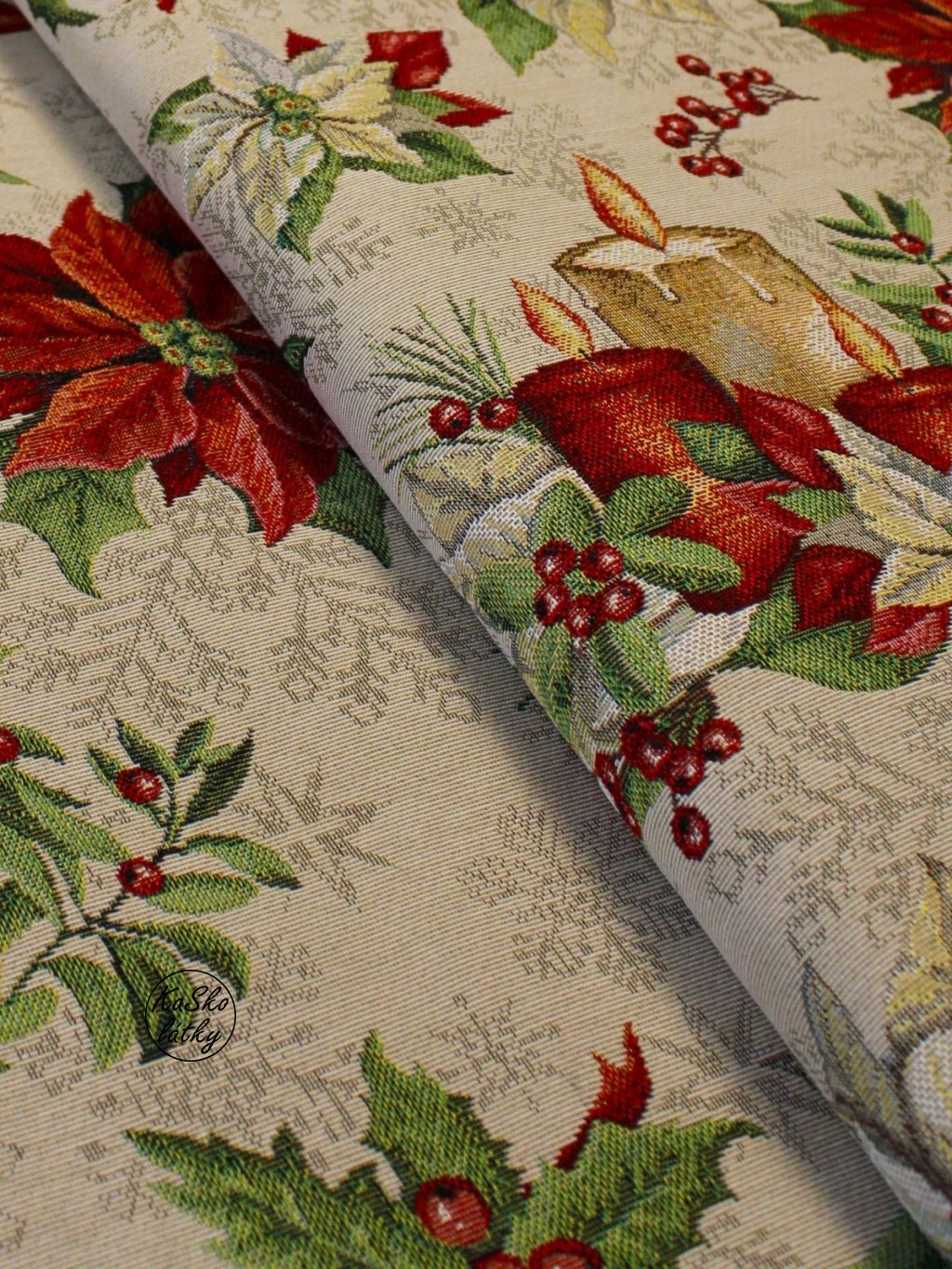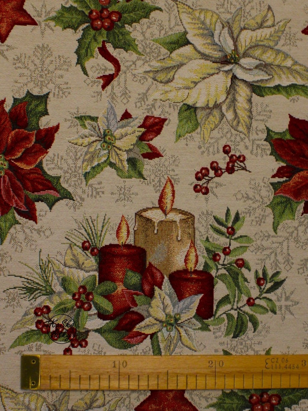 Zbytek - Gobelínová tkanina vánoční hvězdy a svíčky 50 x 140 cm