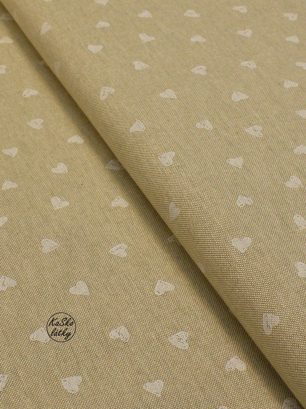 Zbytek - Režná látka bílá srdíčka 35 x 140 cm