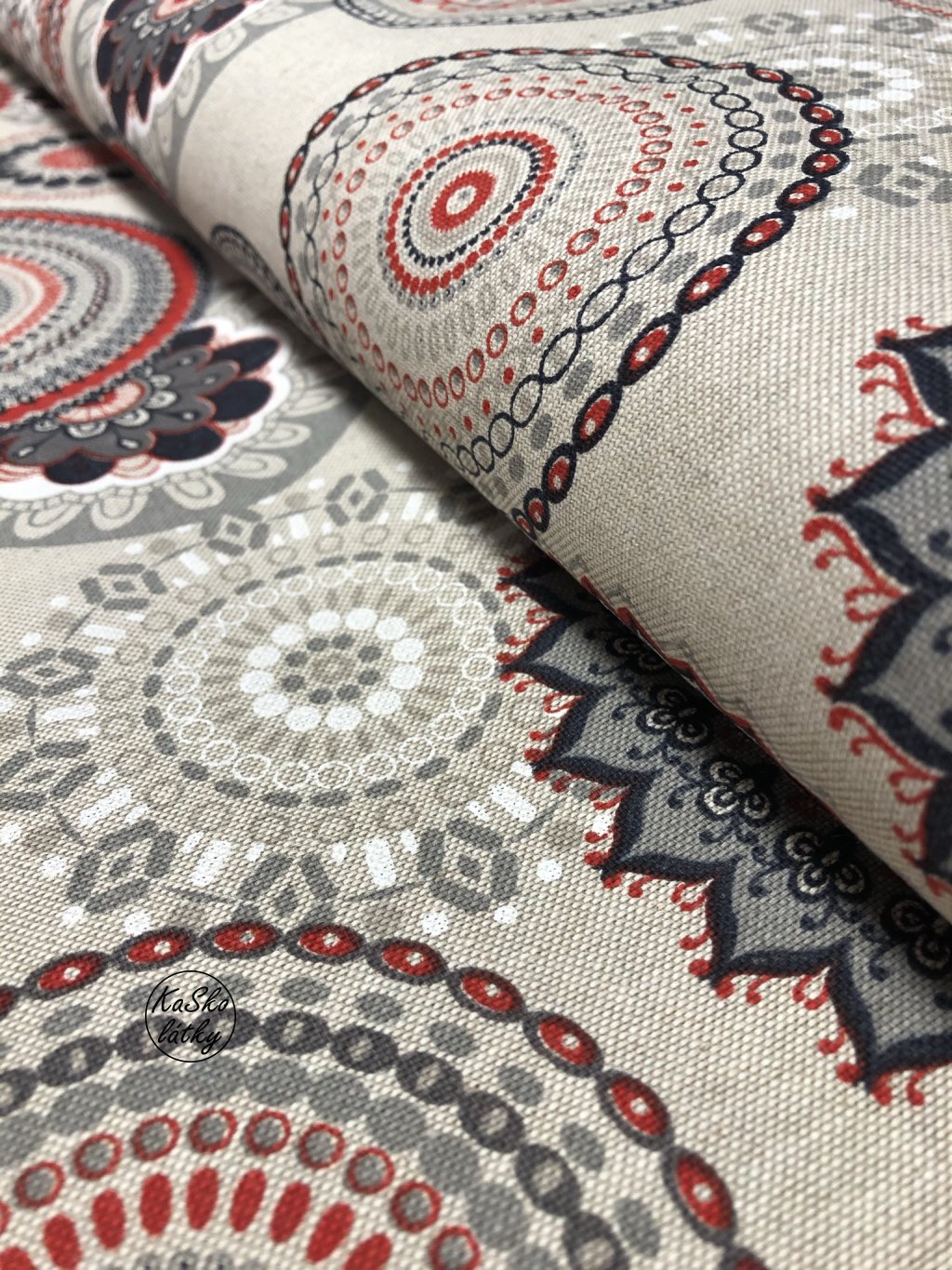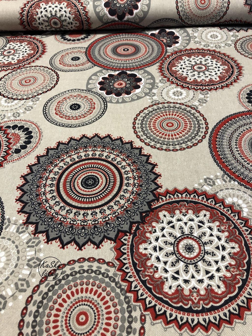 Zbytek - Režná látka červené mandaly 70 x 140 cm