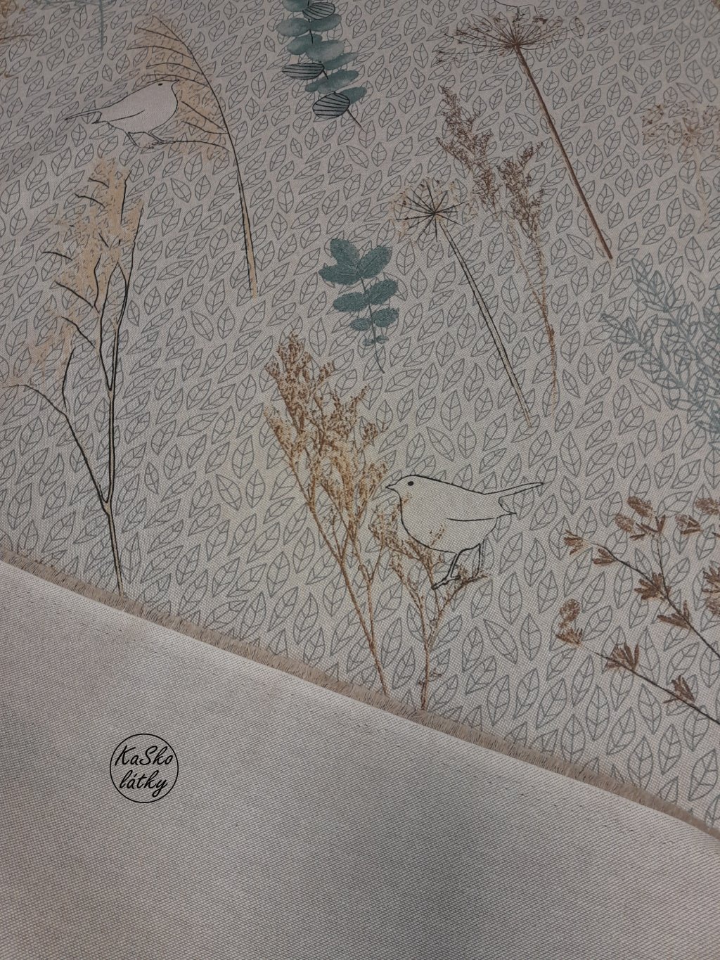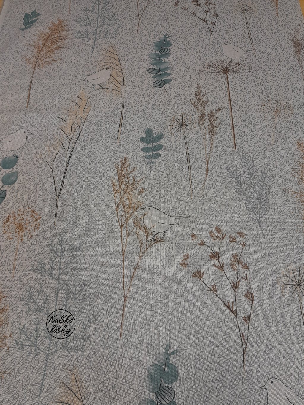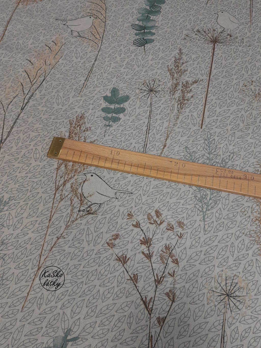 Zbytek - Režná látka ptáčci s lístky 30 x 140 cm