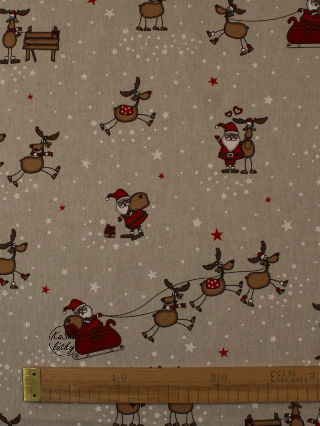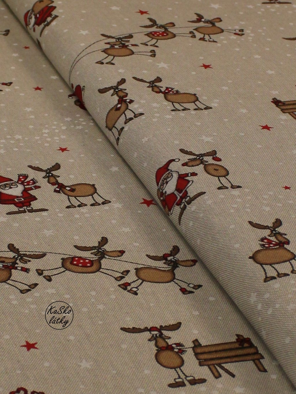 Zbytek - Režná látka sobi se sáněmi 50 x 140 cm