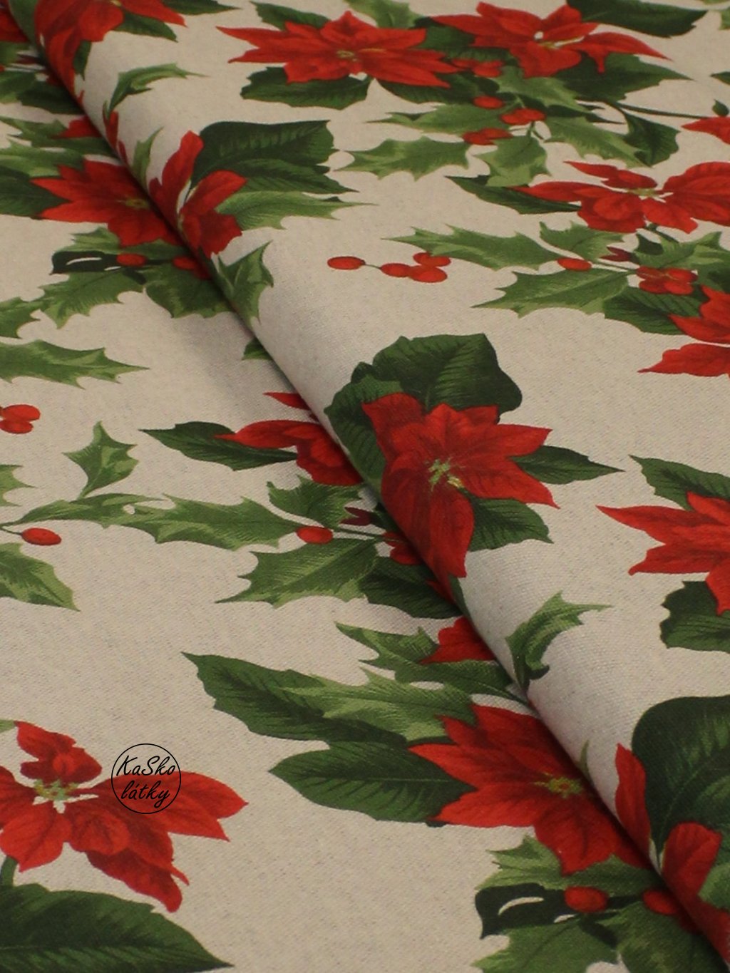 Zbytek - Režná látka vánoční hvězdy 30 x 140 cm